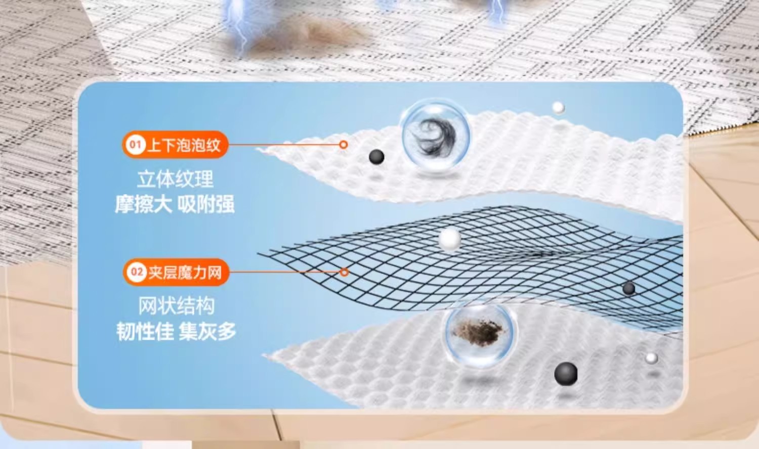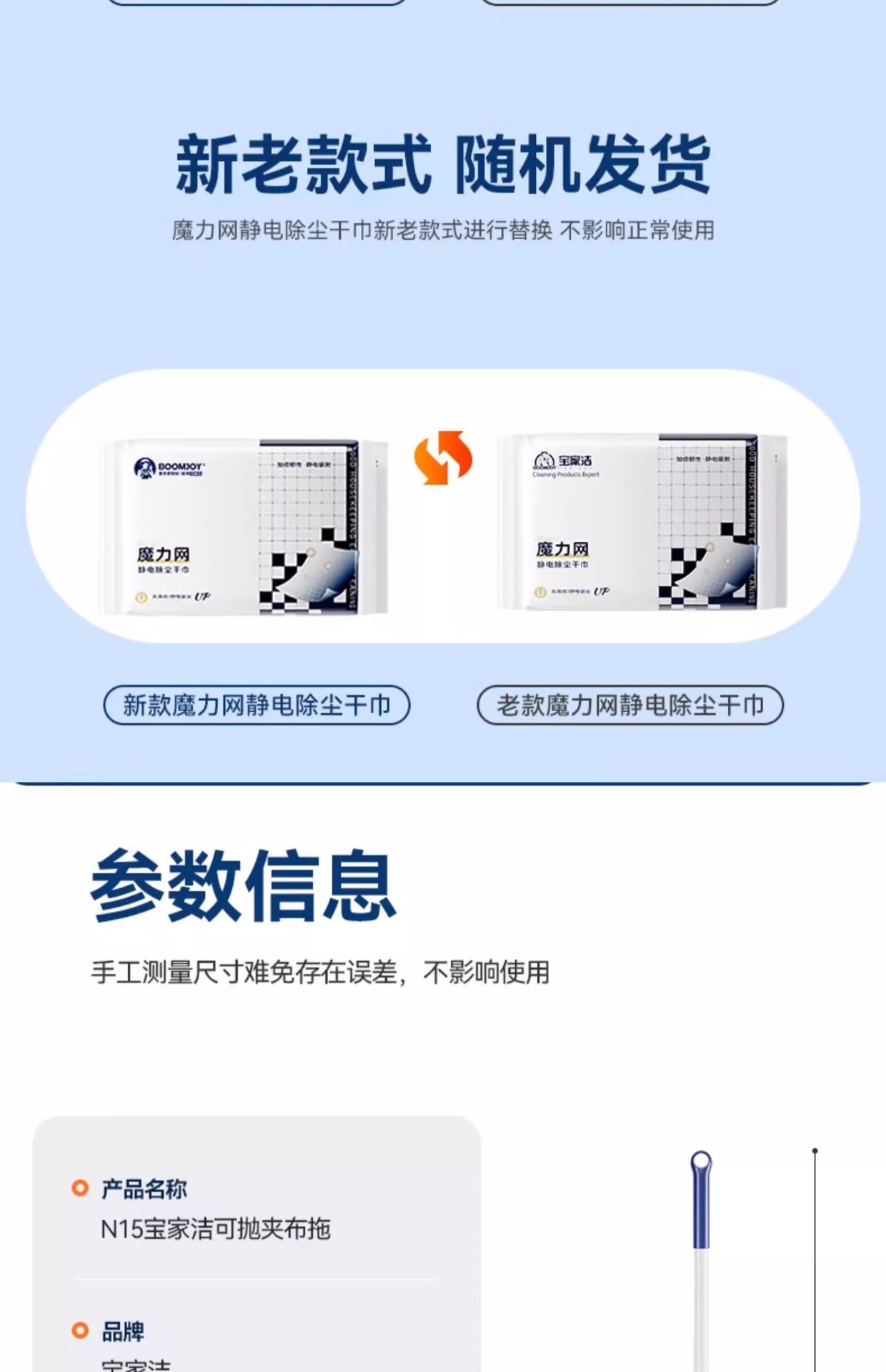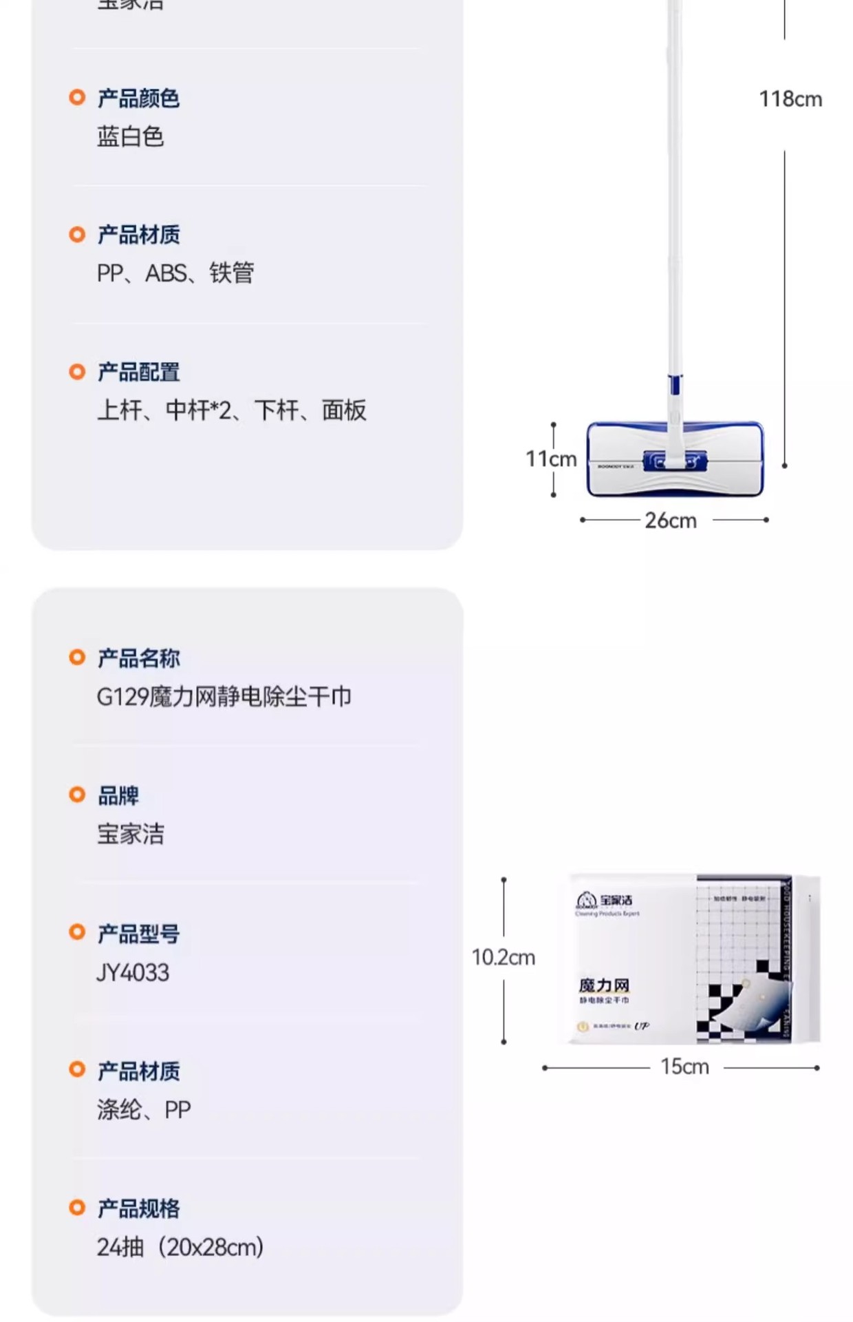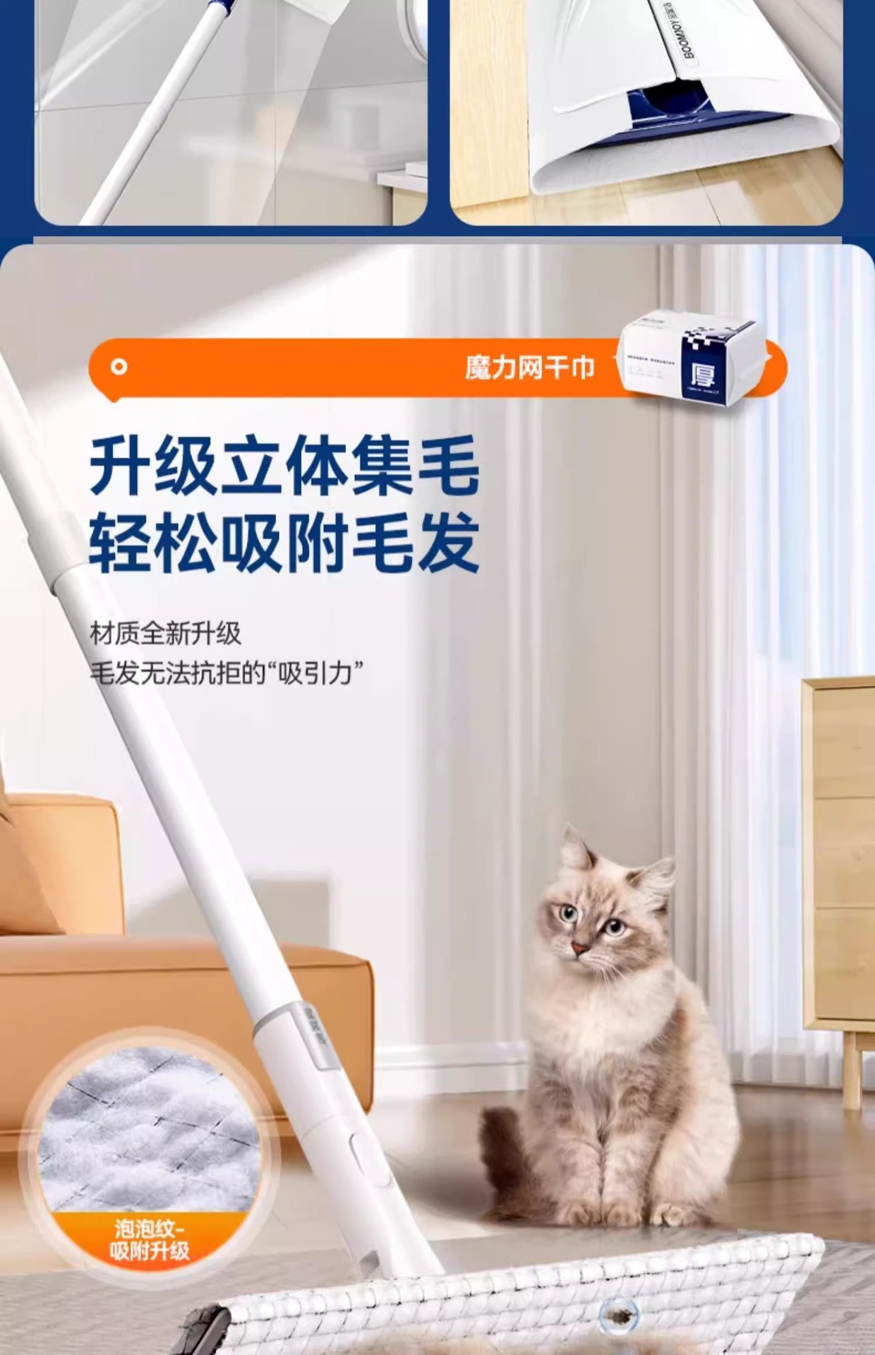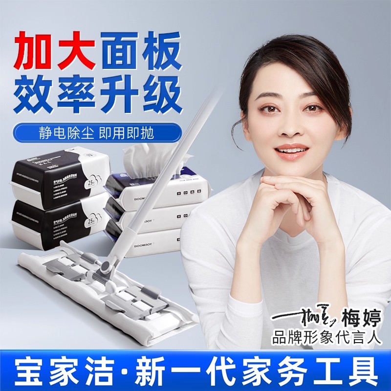 宝家洁拖把网红静电除尘拖把三重加厚除尘纸毛发吸附懒人夹布拖把