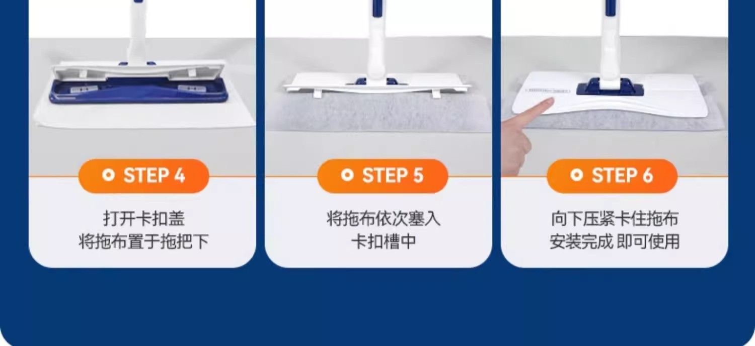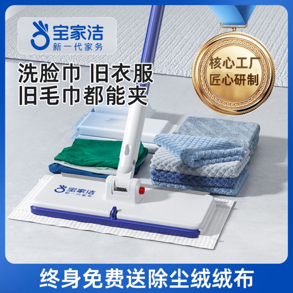 宝家洁夹布平板拖把新款家用一拖净洗脸巾抹布多功能懒人免手洗