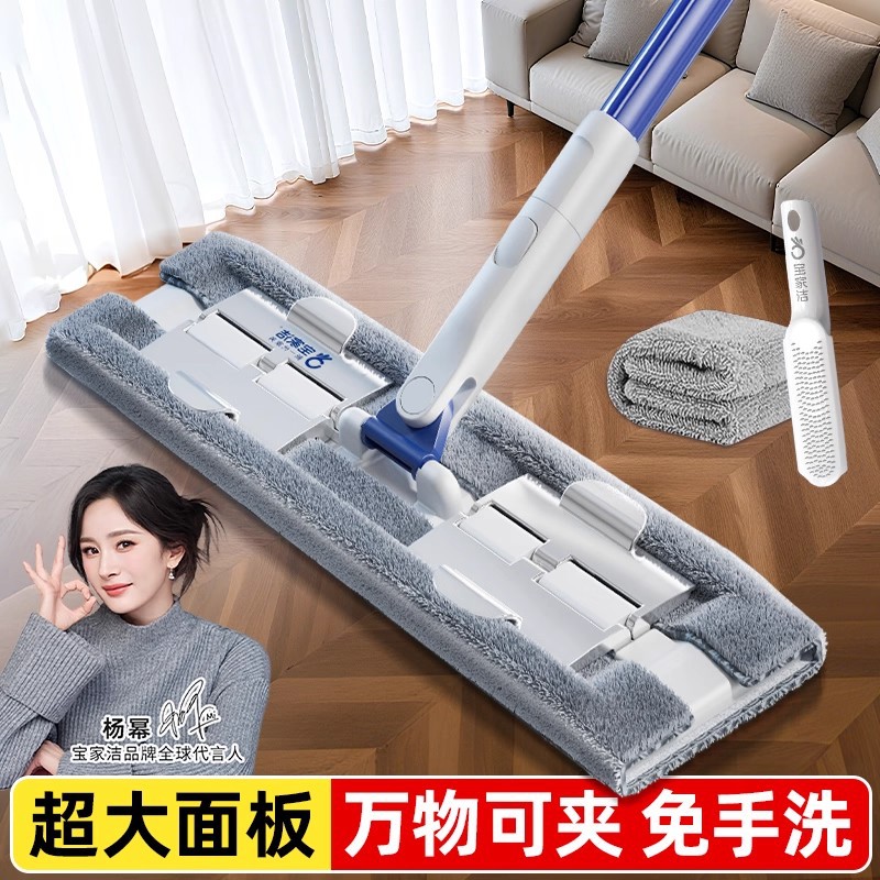宝家洁大号夹布平板拖把干湿两用大面积拖地免手洗擦柜子擦墙神器