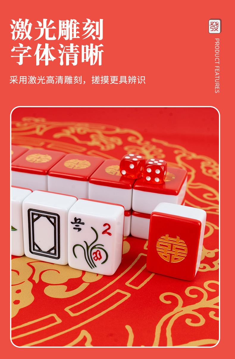 家用手搓麻将红色双喜卡通喜庆麻将创意定 制42/44 礼品礼盒装