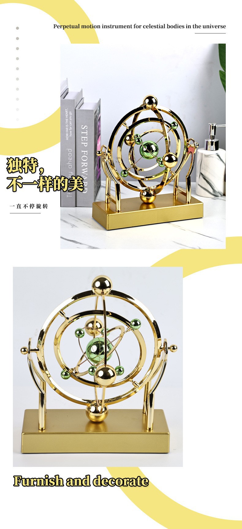 宇宙永久運動オーナメント、リビングルームカオスオーブン、物理回転デスクストレージ、オーナメントギフト