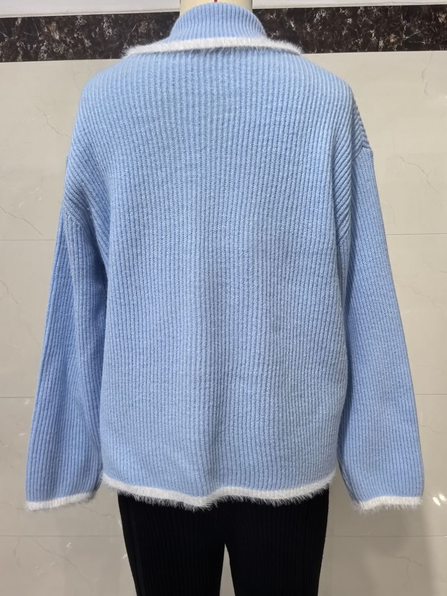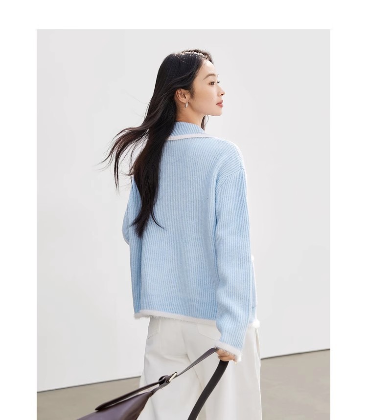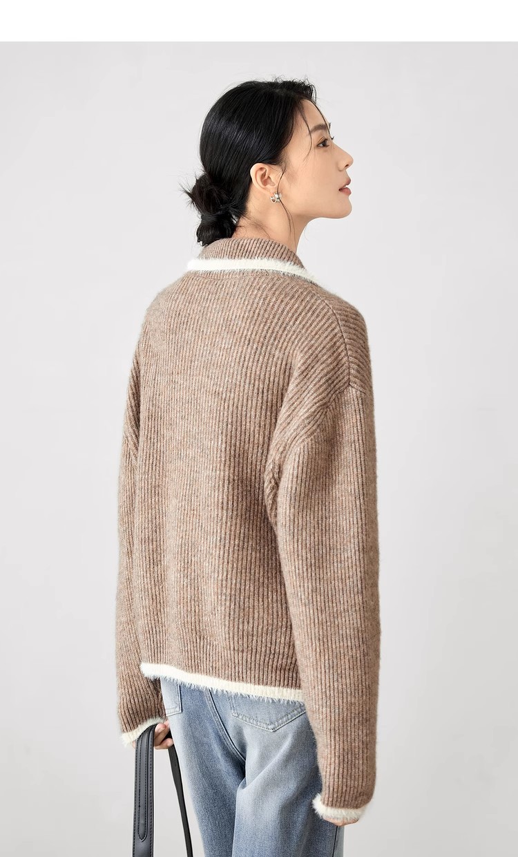 2025秋冬新作、コントラストカラーで若見え&着痩せ効果のあるニットカーディガン、東南アジア向け輸出、小花ボタン付き高品質セーター(女性用)