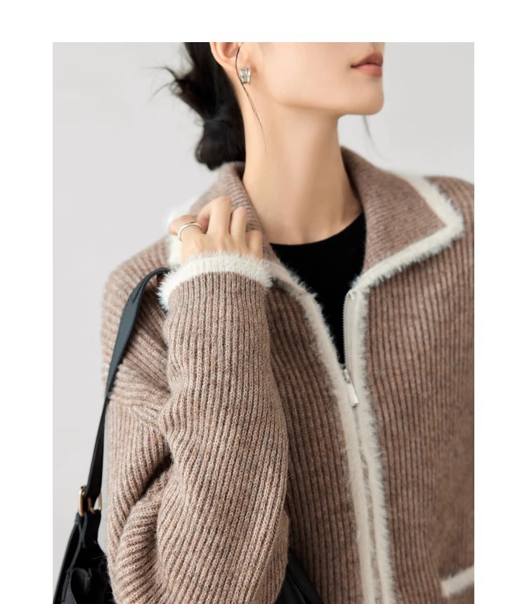 イミテーションミンクファー高級セーターコート レディース 2025秋冬新作 スイートで優しいスタイル ポケット付き 韓国風ニットカーディガン