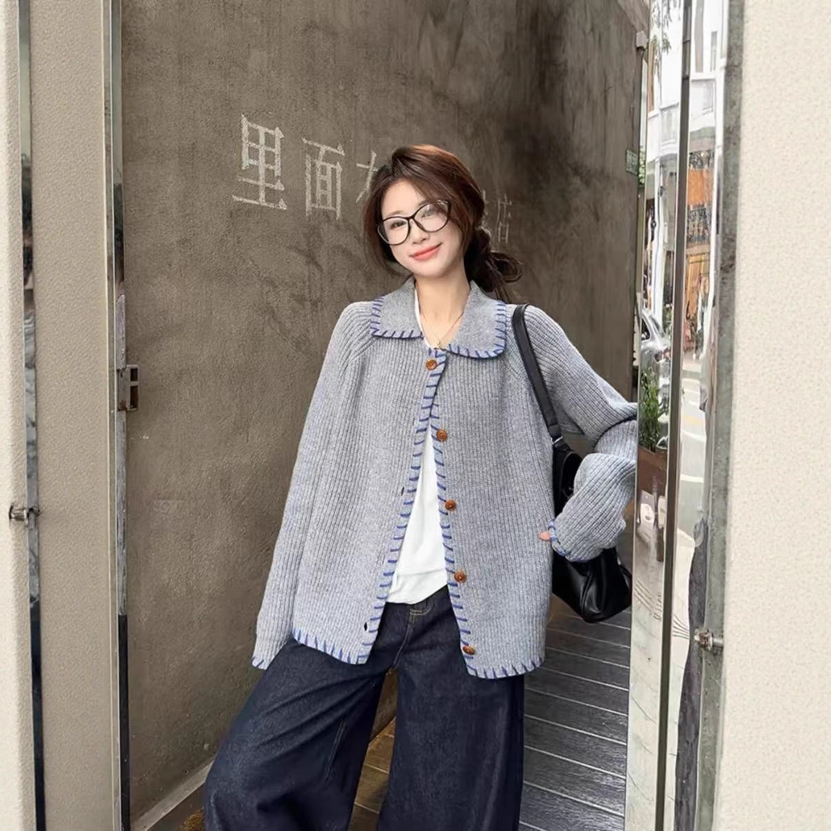 2025 秋冬新スタイルシンプルな日本製ニットカーディガンスリムカジュアルルーズ多用途カレッジスタイルセータージャケット女性用