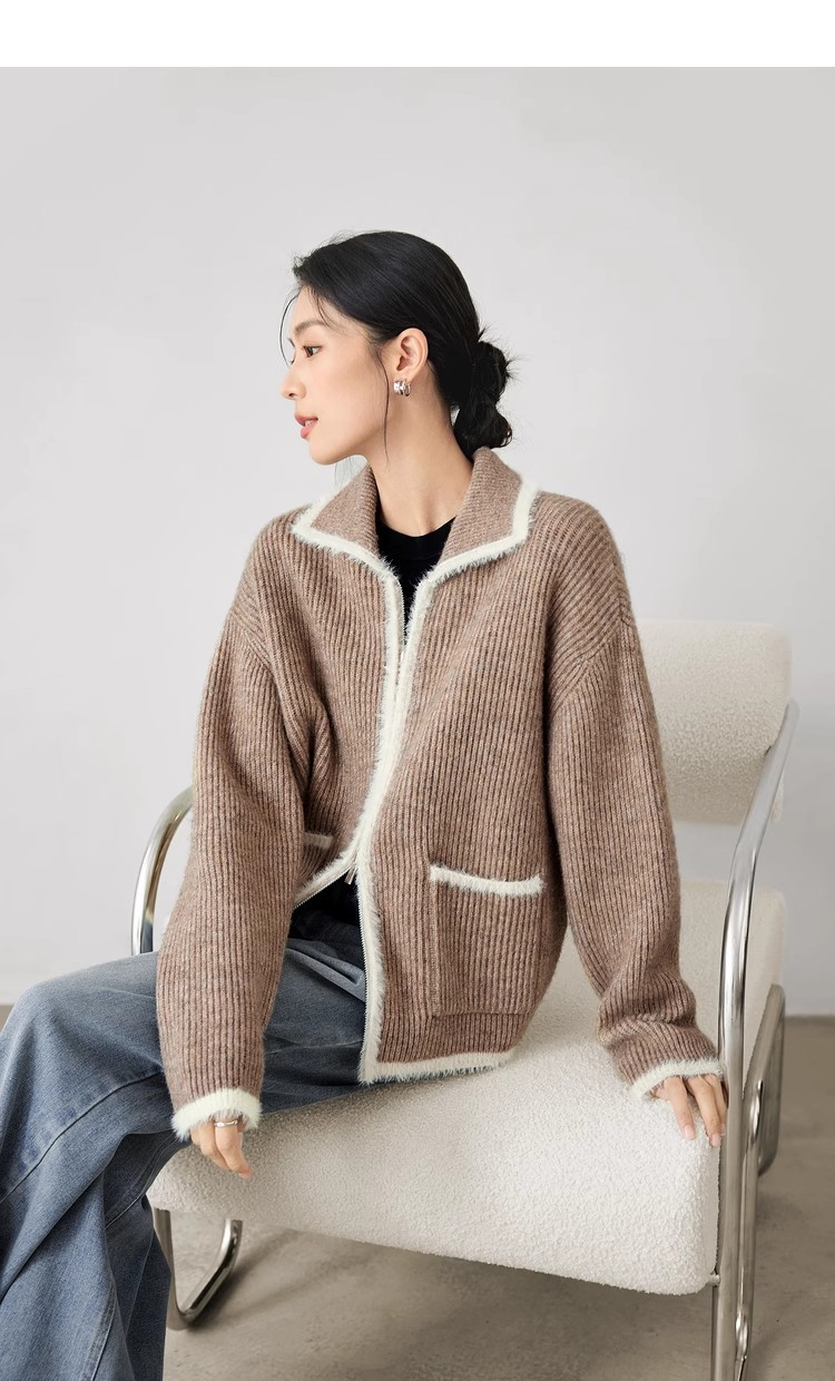 2025秋冬新款百搭时尚洋气优雅翻领韩系针织开衫减龄优质毛衣女