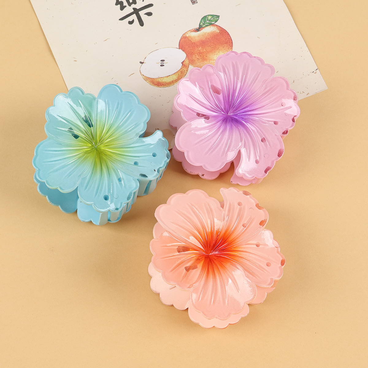 跨境热销渐变色卷心花抓夹发夹夏日海边度假风大号鲨鱼夹发抓头饰