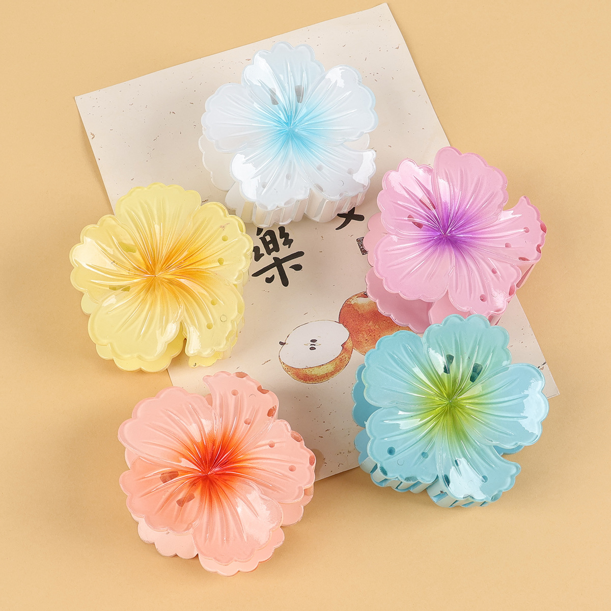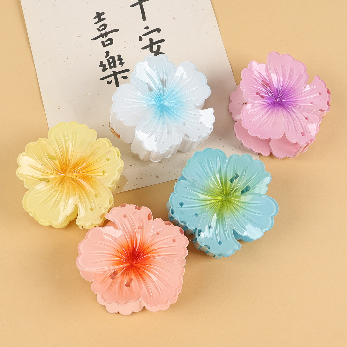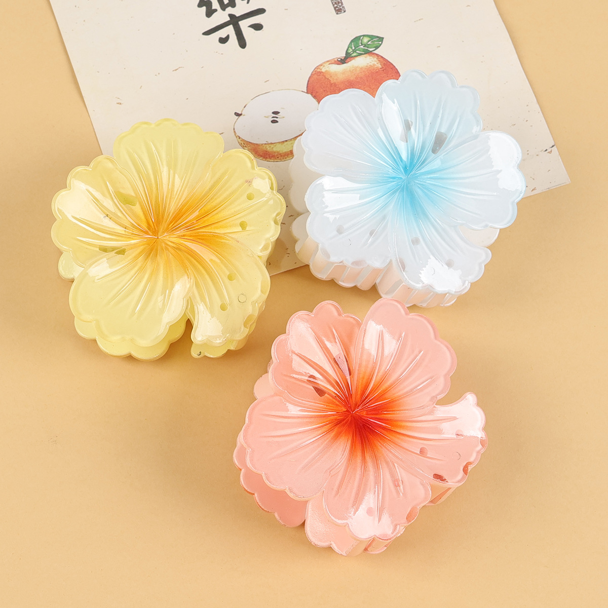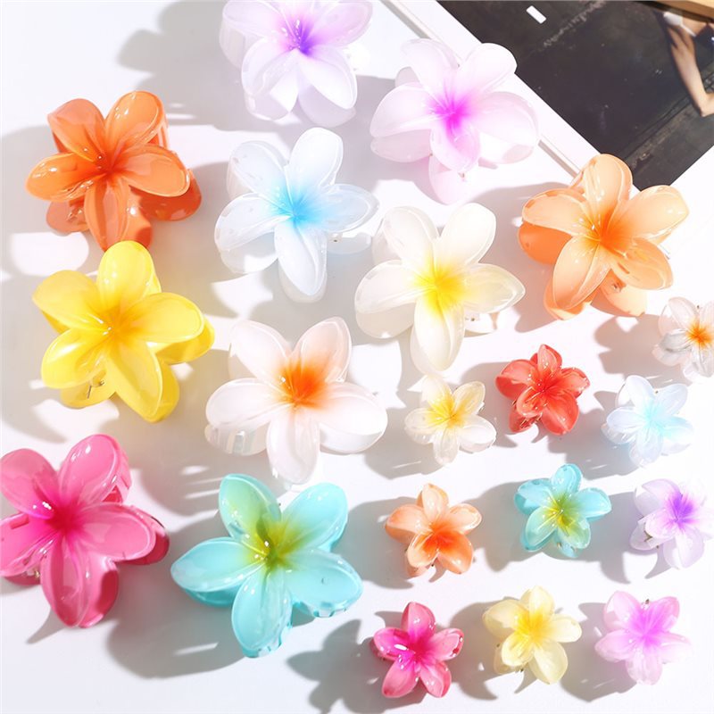 跨境彩色鸡蛋花抓夹高级感渐变花朵发夹后脑勺盘发马尾鲨鱼夹头饰