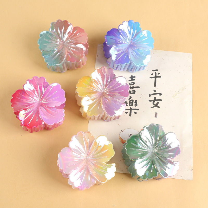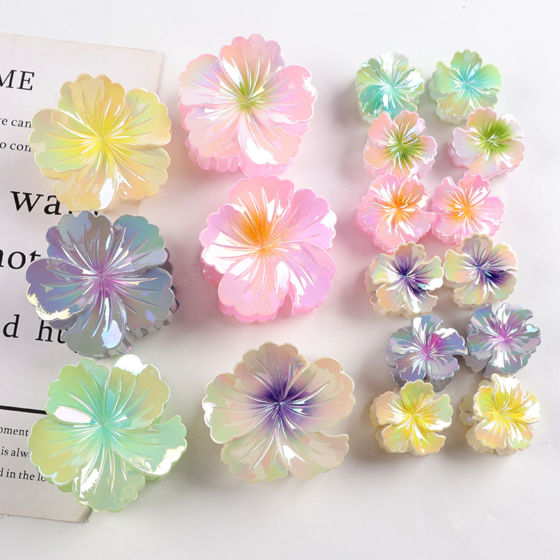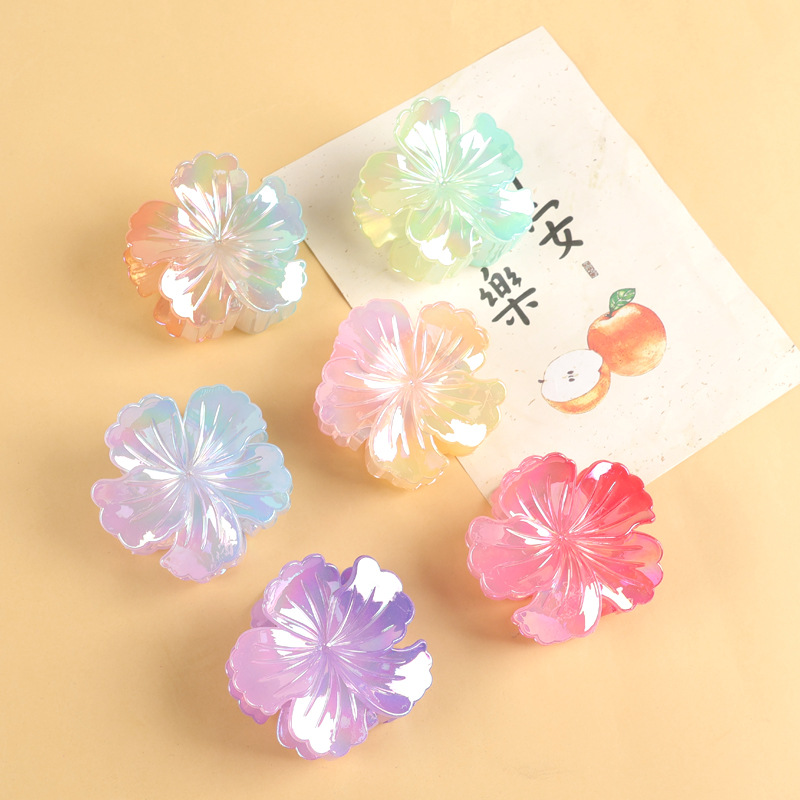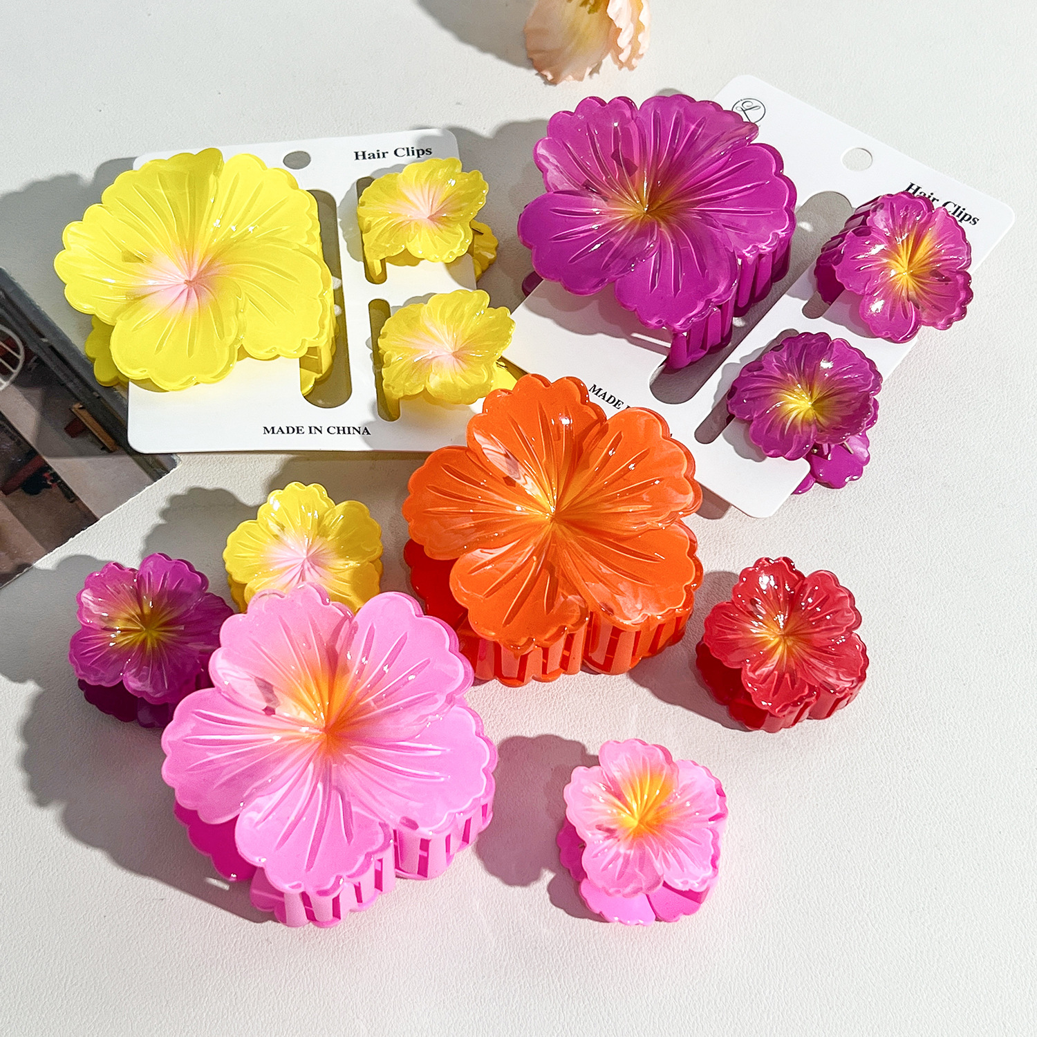 跨境彩色鸡蛋花抓夹高级感渐变花朵发夹后脑勺盘发马尾鲨鱼夹头饰