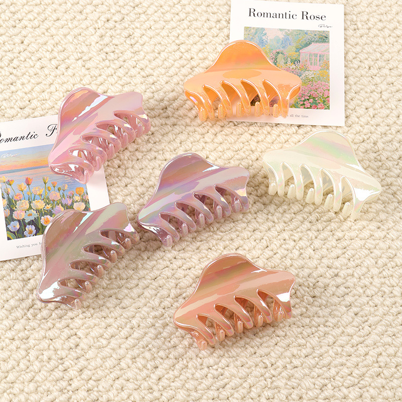 夏の海の新作シェルヘアクリップ カラフルグラデーションヘアピン シャーククリップ 個性的なヘアアクセサリー 海の雰囲気