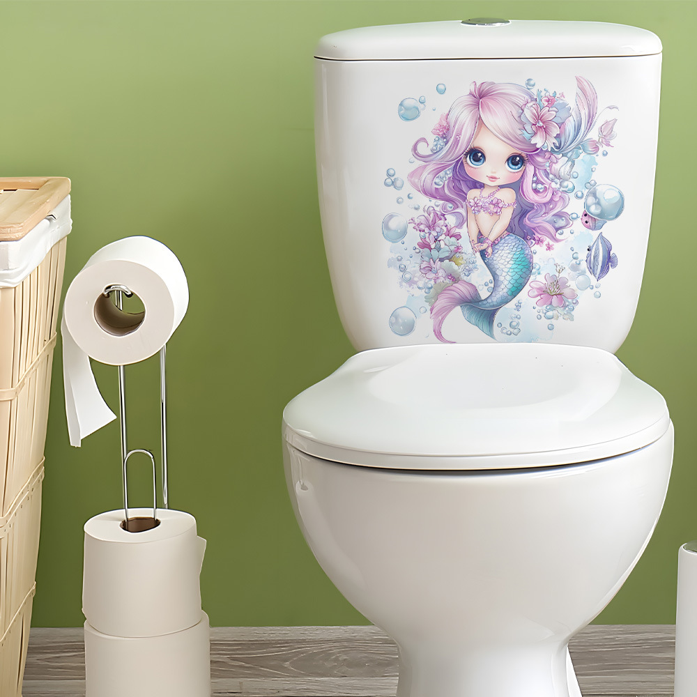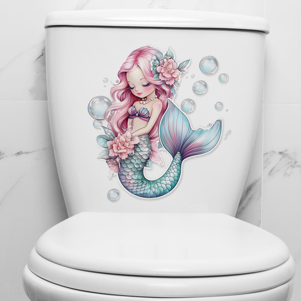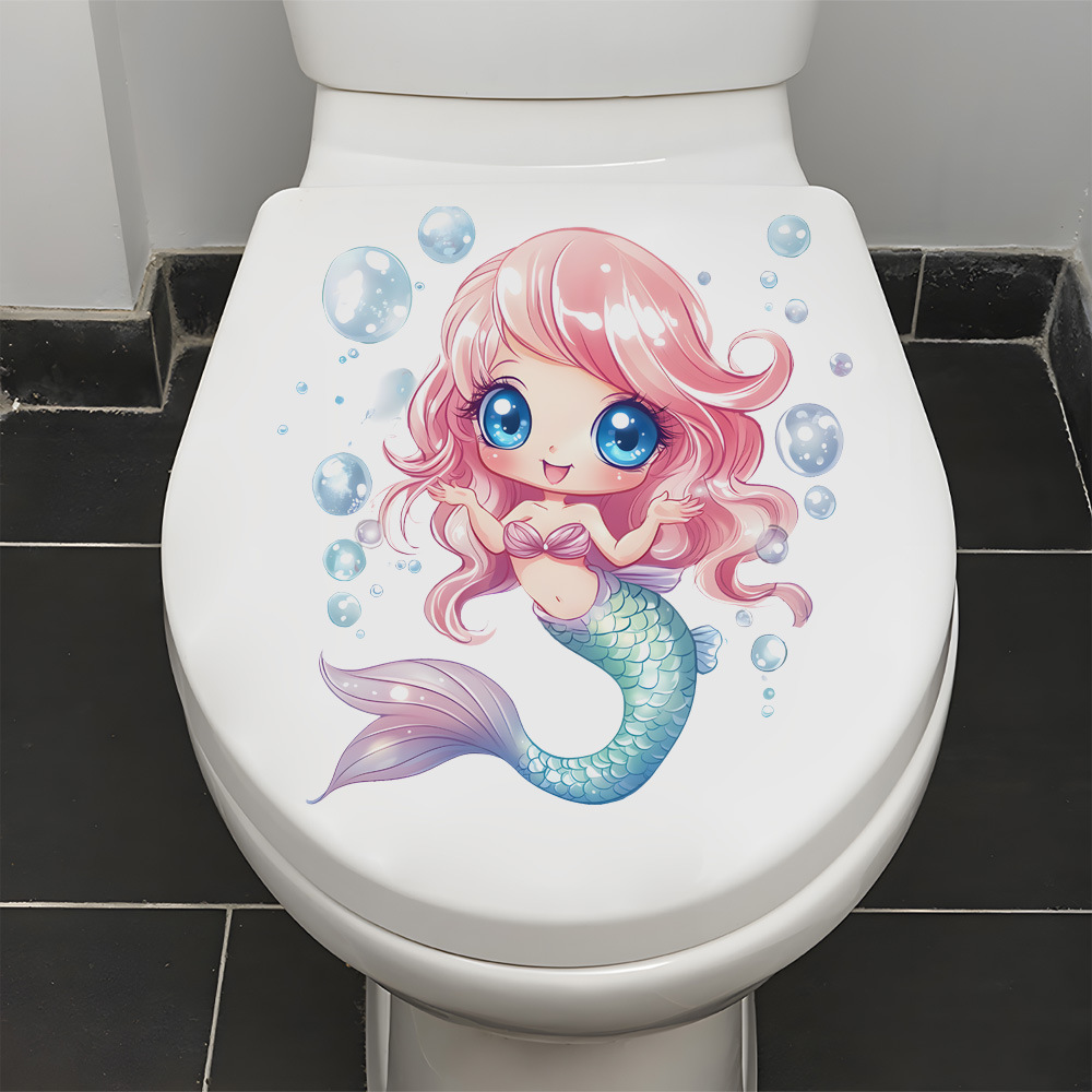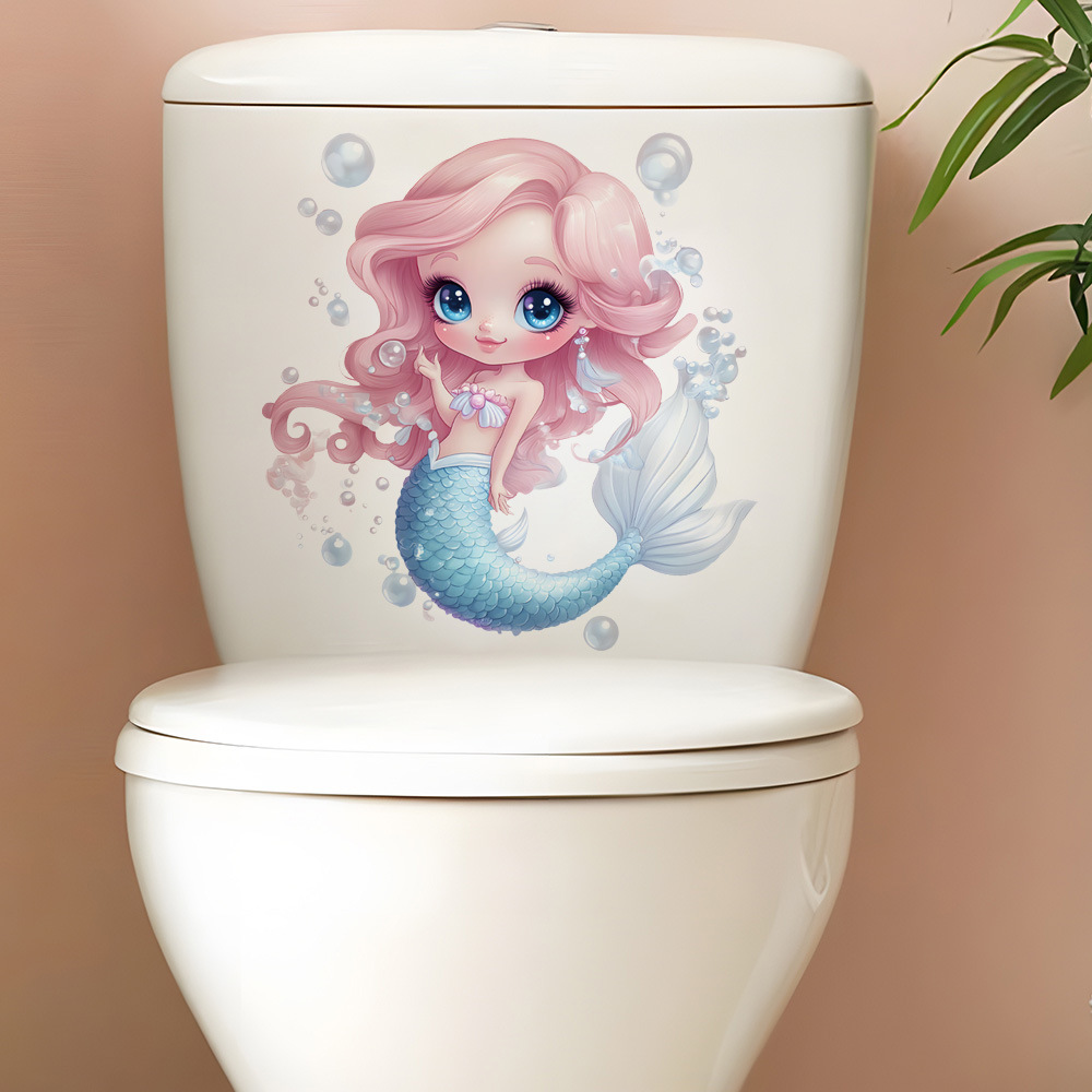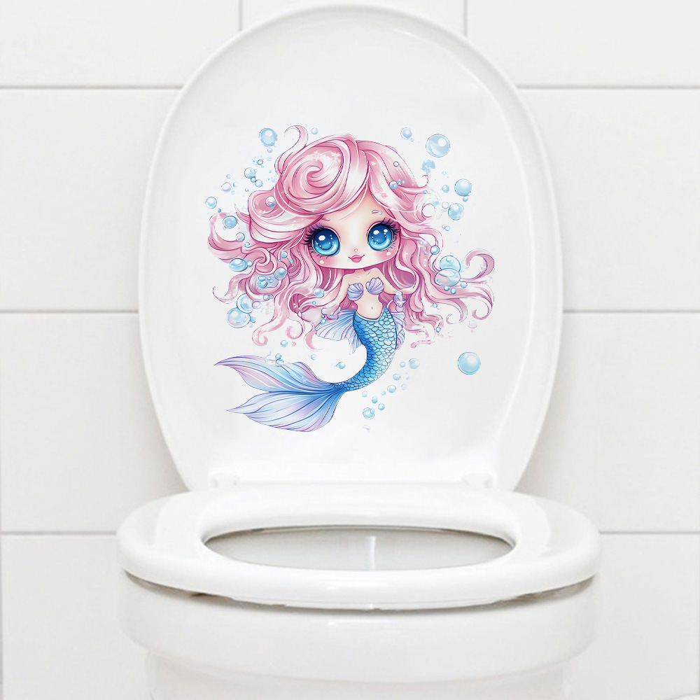 かわいい水彩漫画マーメイドトイレステッカー浴室浴室便座装飾防水自己粘着壁ステッカー
