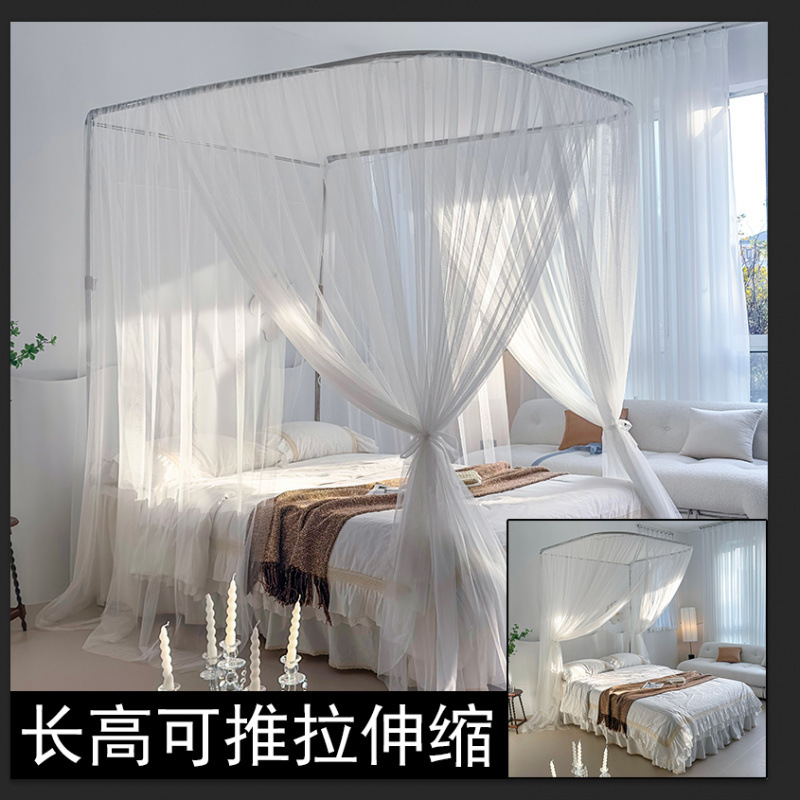 フェアリースタイルの新しいU字型レール蚊帳厚みのある伸縮式ステンレススチールブラケット3ドアフロアプリンセススタイル