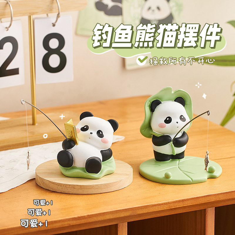パンダの釣りのアイデアがかわいい寝室のステーションの女子学生のプレゼントの携帯電話のスタンドの事務のデスクトップの装飾の小さい置物