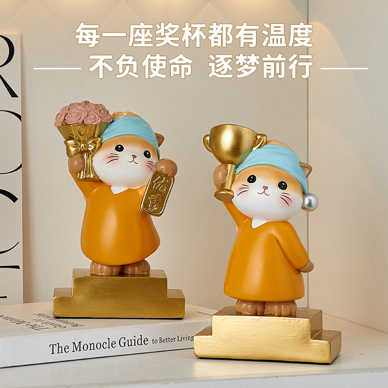 漫画風猫の賞品置物、コンテストの賞品、玄関、リビング、机の装飾、DIY彫刻、教師の日のギフト