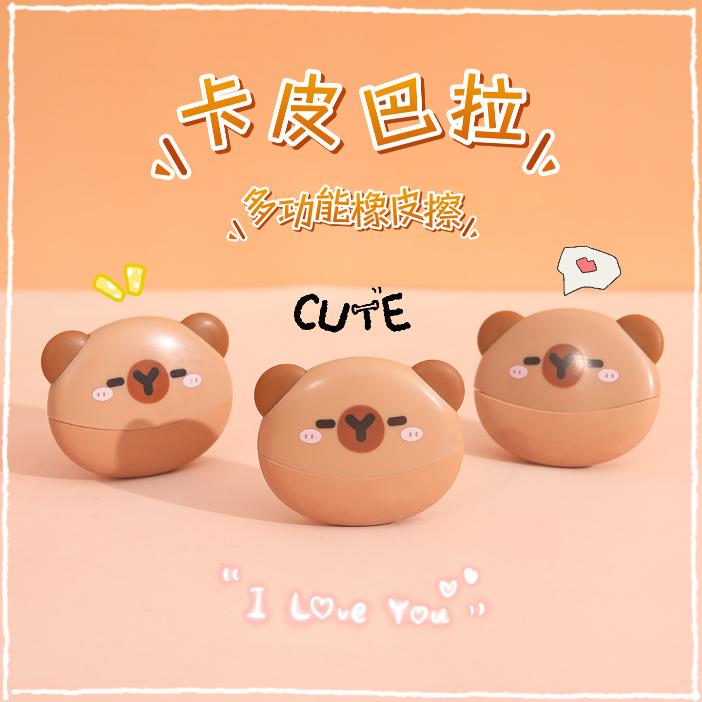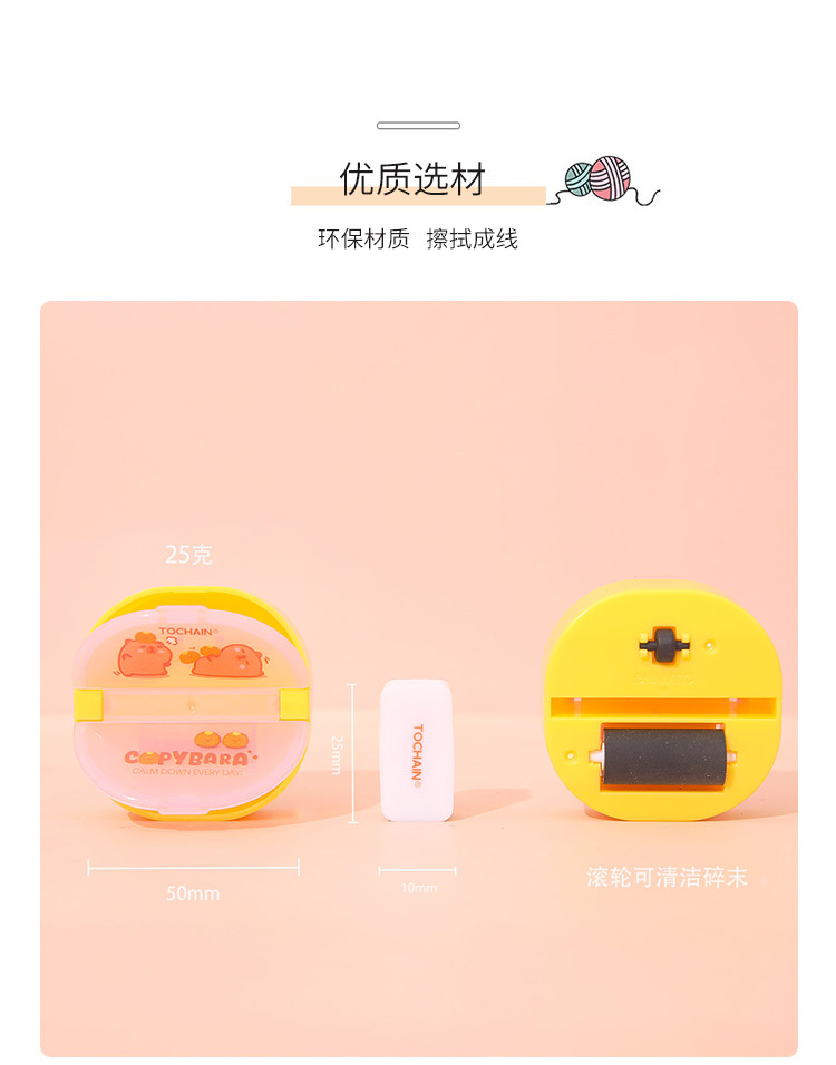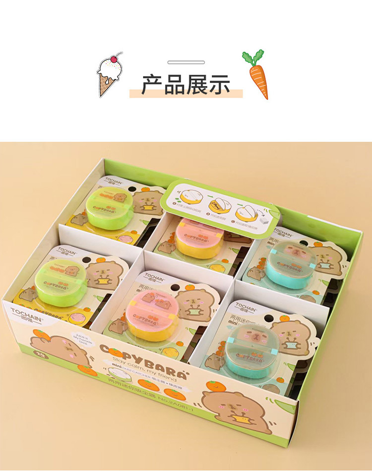 图强橡皮擦卡皮巴拉卡通儿童魔术盒橡皮小学生用铅笔擦创意文具