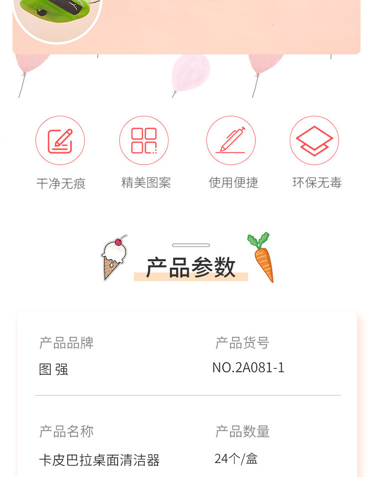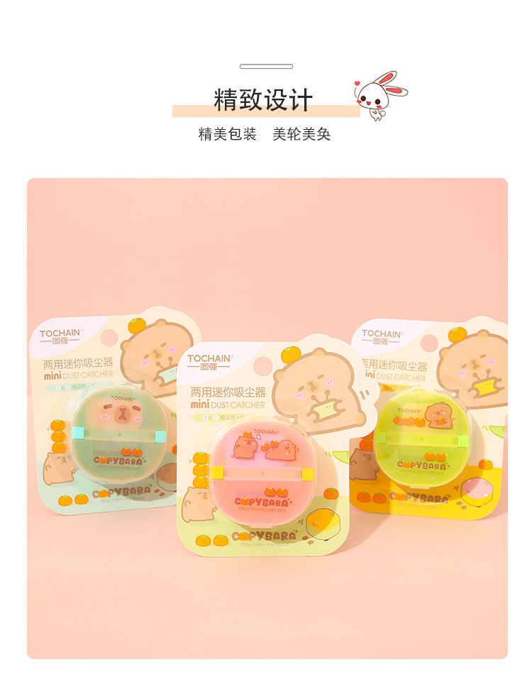 Tuqiang 漫画ミニデスクトップ掃除機オフィス電動ハンドヘルドクリーナー学生用品ゴムくず掃除機