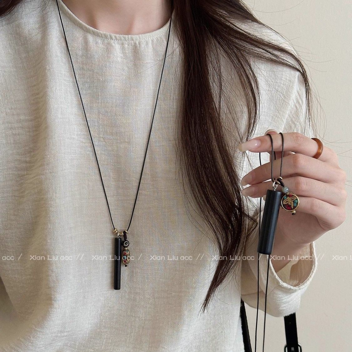 尼泊尔黑檀木皮绳长款项链女2025新款小众个性冷清感毛衣链配饰