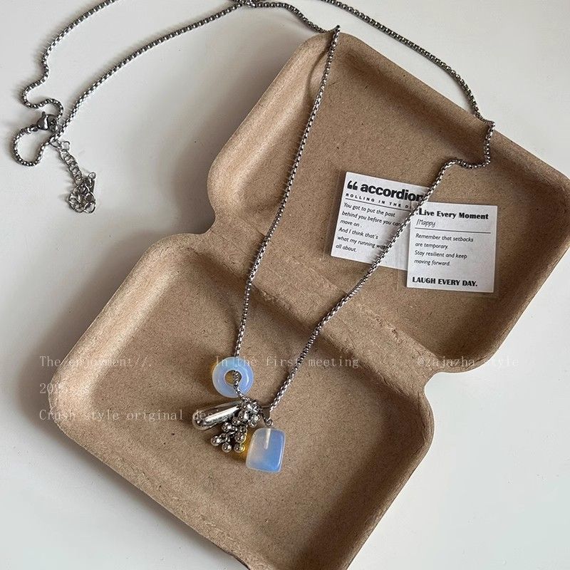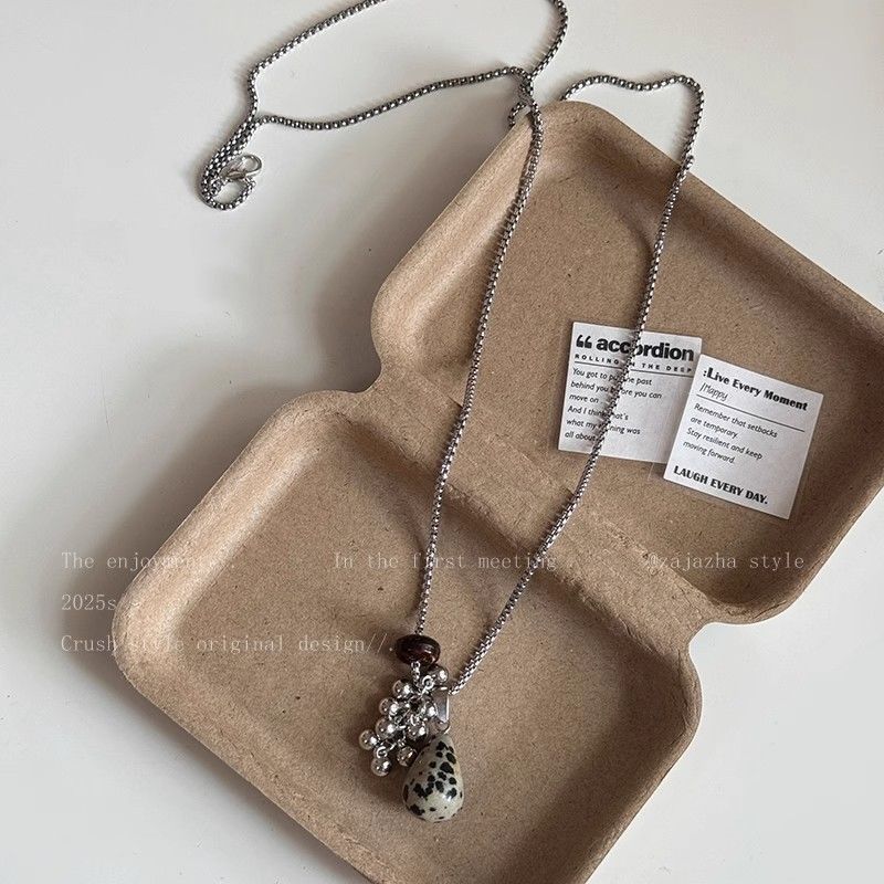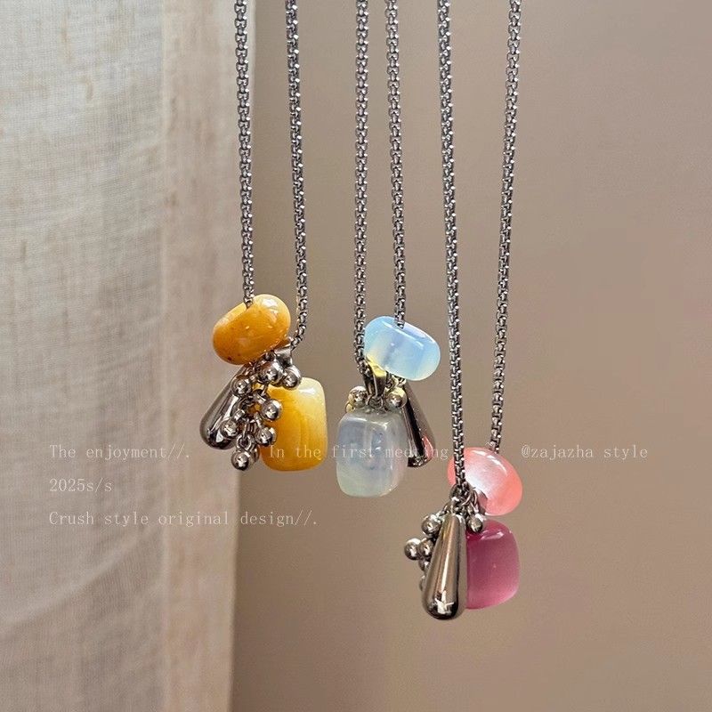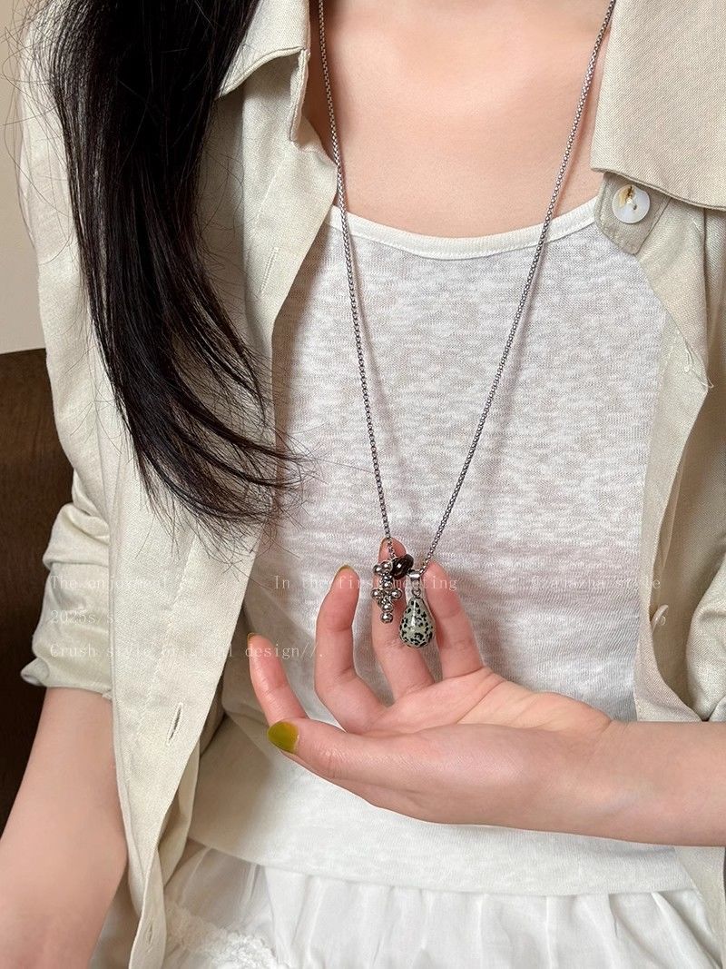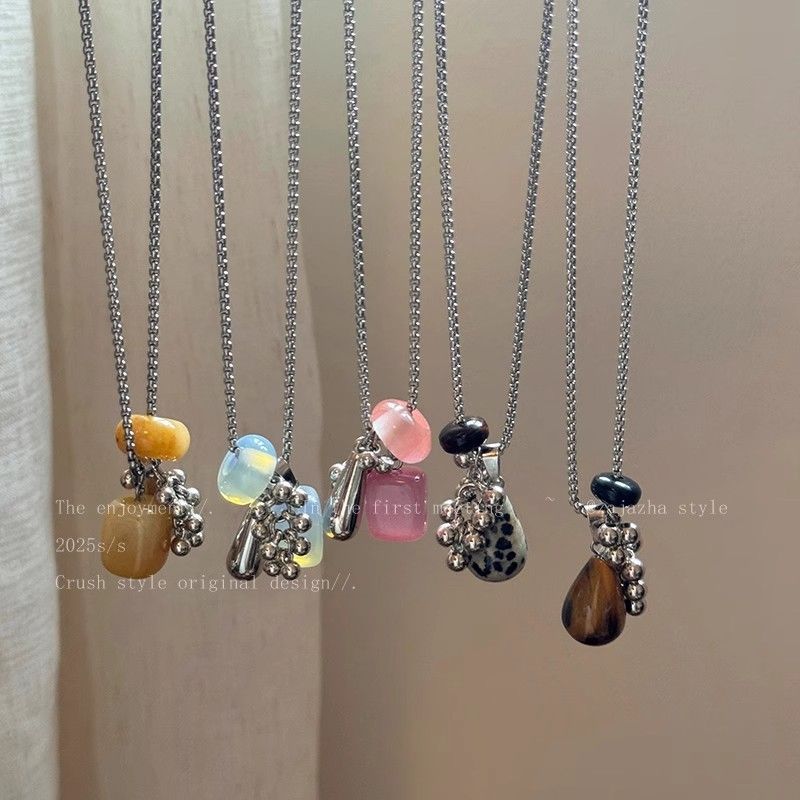 钛钢项链博主同款虎眼石葡萄串吊坠小众高级感长款毛衣链可调节女