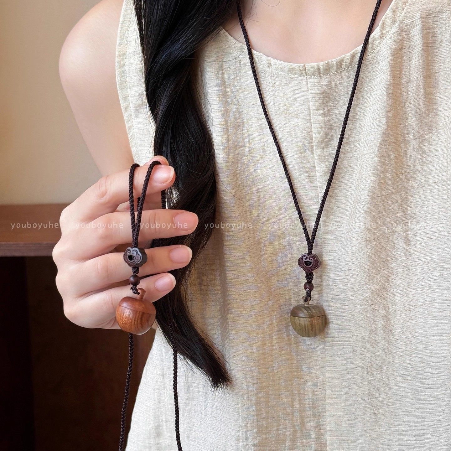 独特创意~可打开的檀木苹果吊坠项链女复古民族风长款毛衣链配饰