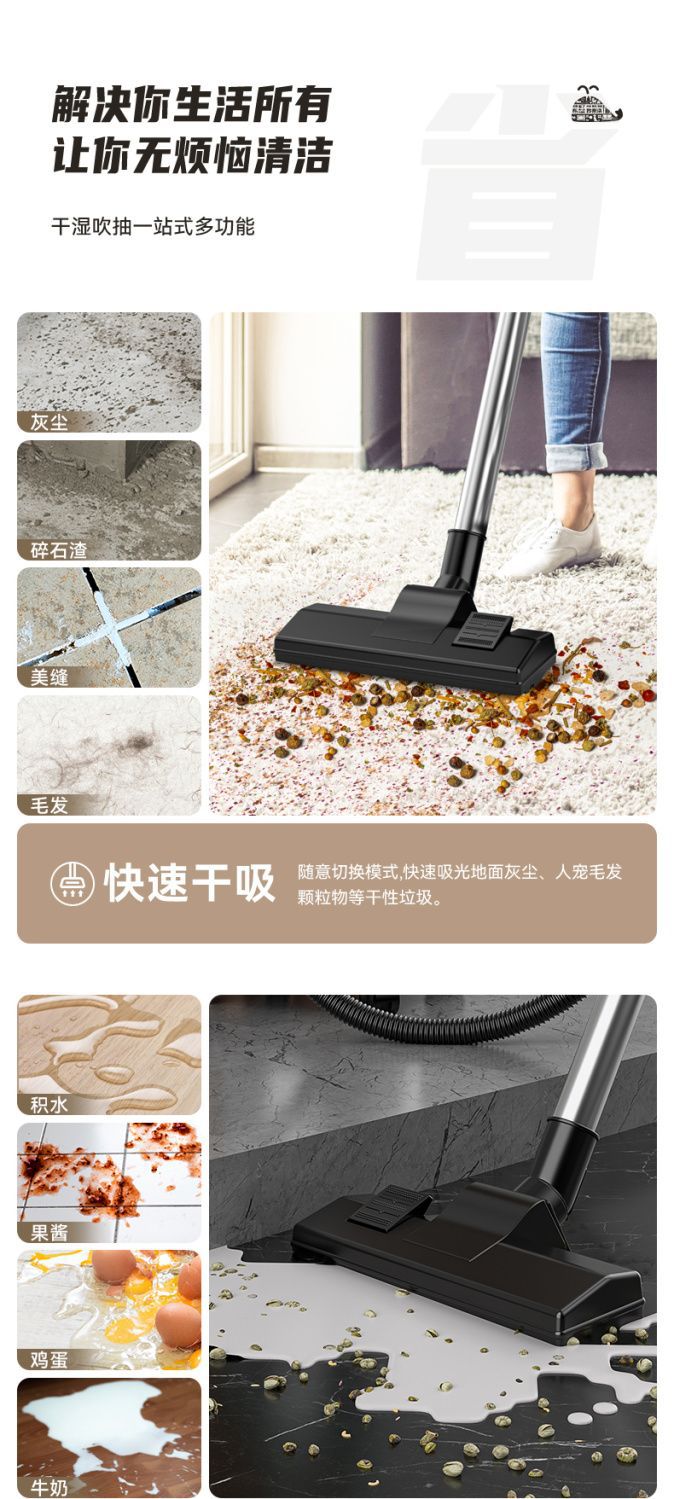 Jingsen 掃除機家庭用大吸引工業用装飾継ぎ目クリーニング商業用ハイパワー家庭用乾湿両用