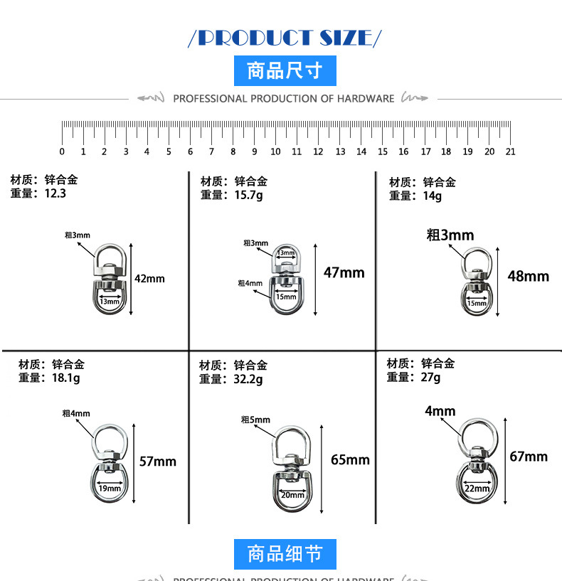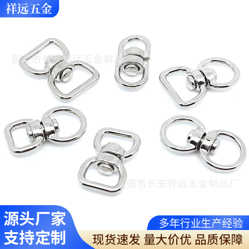 现货供应锌合金旋转环扣箱包五金牵引绳钩扣8字扣万向旋转钥匙扣