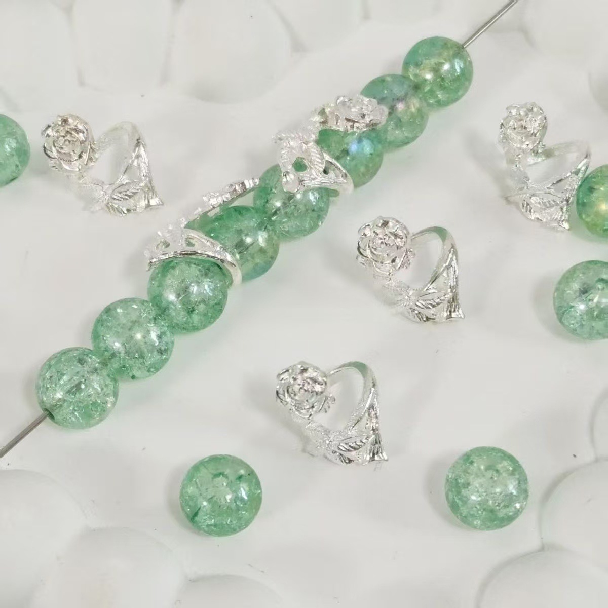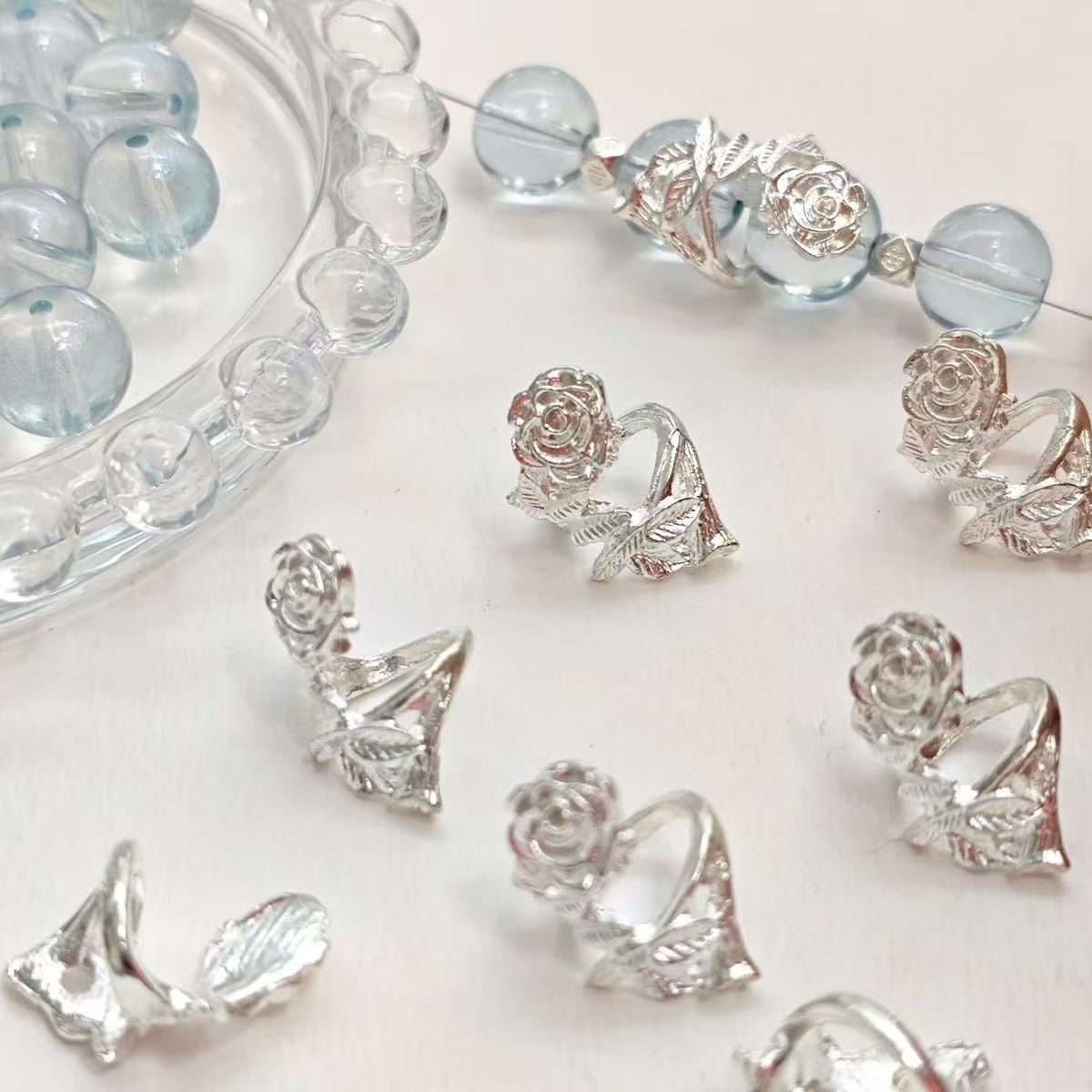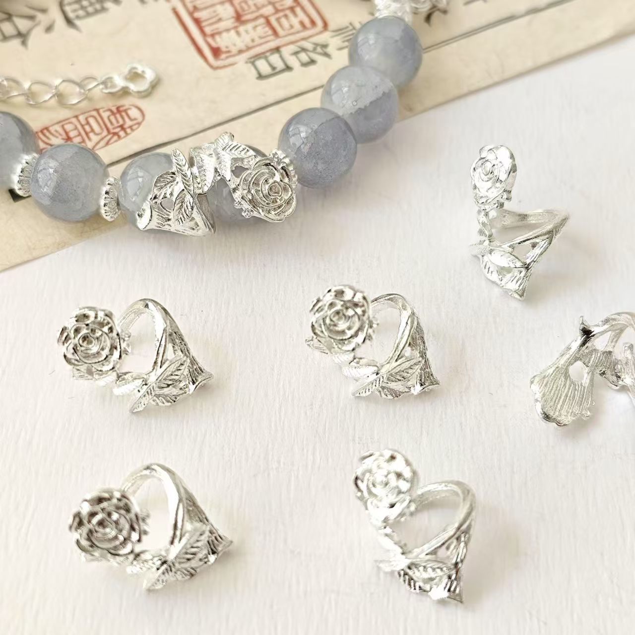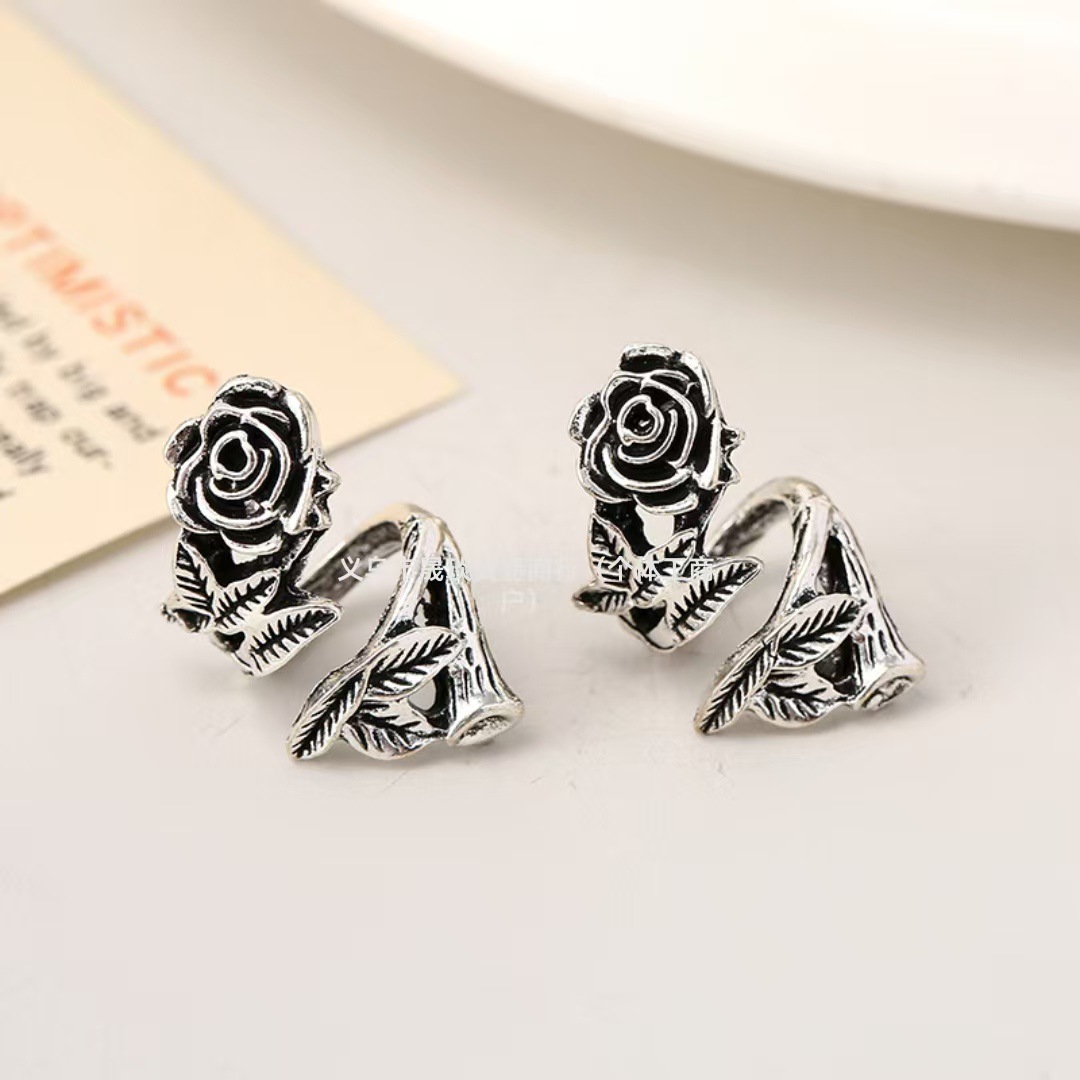 DIY ブレスレットビーズローズリングローズランニングリングローズスペーサービーズリングフラワーアンティークシルバー合金ビーズチベットシルバービーズ
