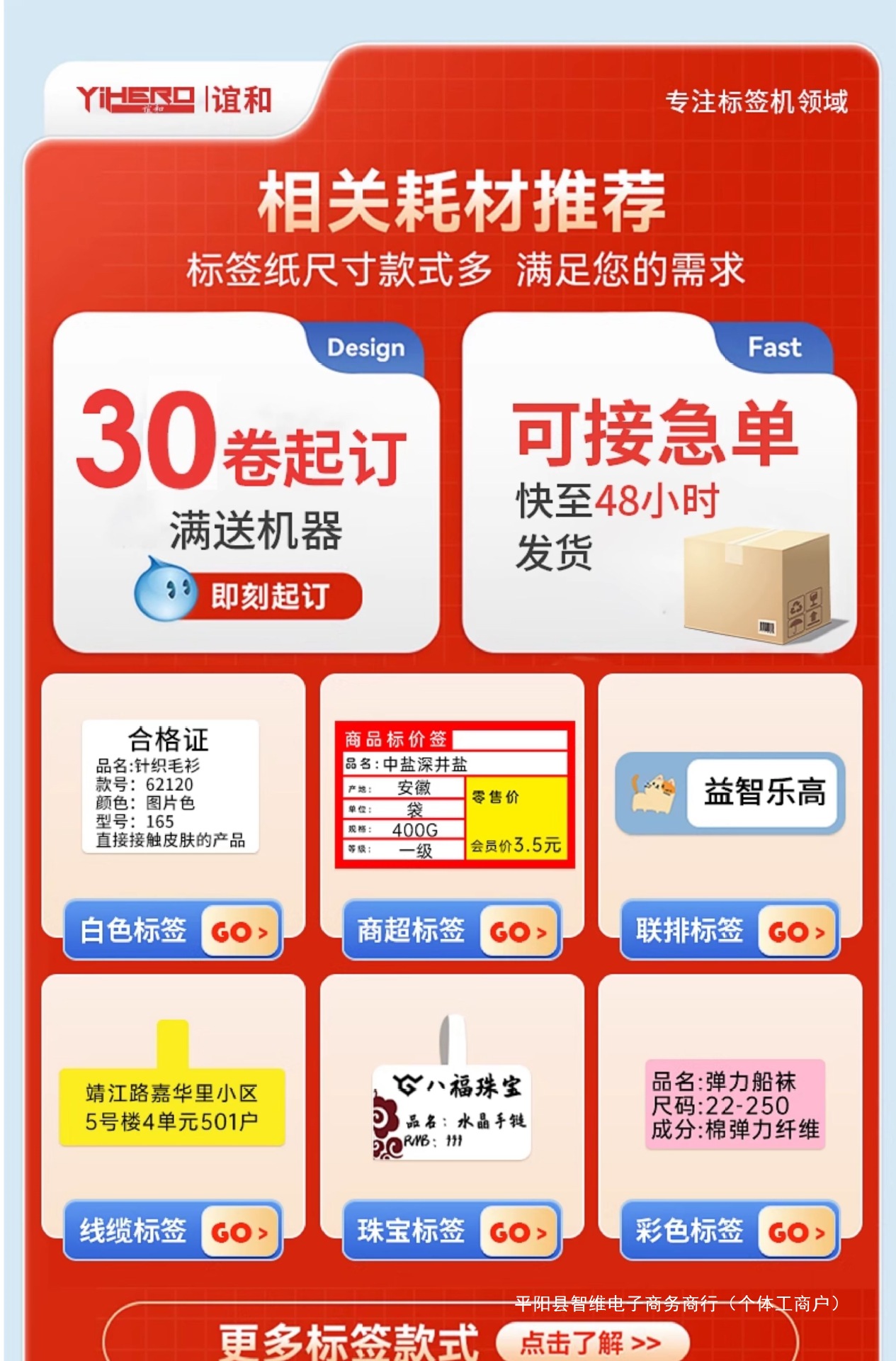 规格 YP11白+(赠1卷任选标签纸),YP11黑+(赠1卷任选标签纸),YP11黑+纸10卷+(赠1卷任选标签纸,YP11白+纸10卷+(赠1卷任选标签纸,YP11黑+纸7卷+(赠1卷任选标签纸,YP11白+纸7卷+(赠1卷任选标签纸,YP11黑+1卷任选标签+(赠1卷任选标签纸),YP11白+1卷任选标签+(赠1卷任选标签纸),YP11黑+3卷任选标签+(赠1卷任选标签纸),YP11白+3卷任选标签+(赠1卷任选标签纸),YP11黑+5卷任选标签+(赠1卷任选标签纸),YP11白+5卷任选标签+(赠1卷任,YP11黑+7卷任选标签+(赠1卷任选标签纸),YP11白+7卷任选标签+(赠1卷任选标签纸),【机】25卷纸+送YP11,15卷四防标签+赠标签机,【食品】常用1卷30*20白标签+YP11黑+(赠1卷任选标签纸),【食品服装】常用1卷50*30白标签+YP11黑+(赠1卷任选标签纸),【食品服装】常用1卷50*30白标签+YP11黑+(赠1卷任选标签纸,【服装吊牌】常用1卷50*70白标签+YP11+(赠1卷任选标签纸),YP10S+1卷任选白标签+(赠1卷任选标签纸),【以下选项】标签任选规格/标签任选规格
