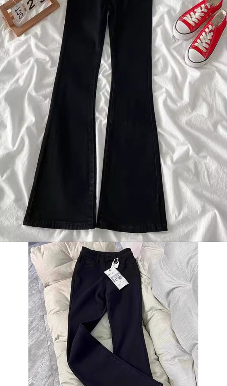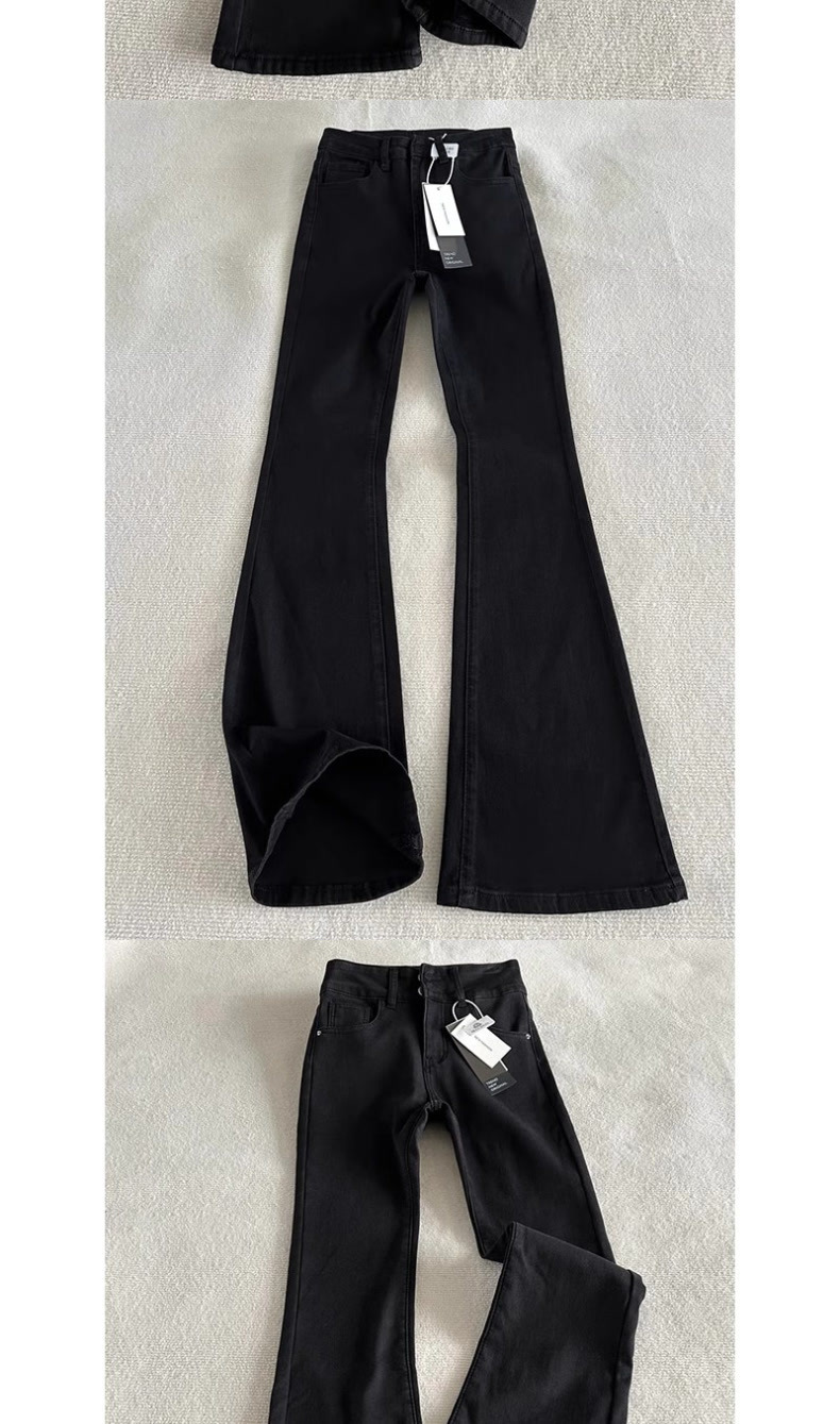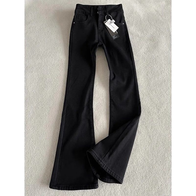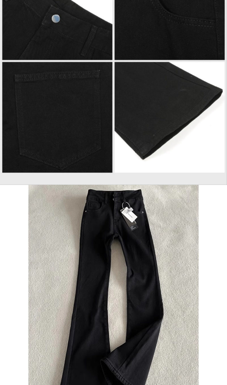 スリムフィットシミターマイクロフレアパンツブラックジーンズメンズ2025春秋新作アメリカンハイストリートバイブパンツ