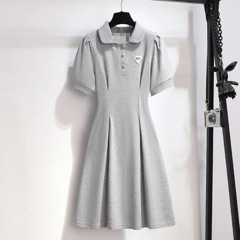アメリカとヨーロッパのポロカラードレス女性用2024年夏新作半袖ウエストカバーお腹痩身Aラインスカート女性用