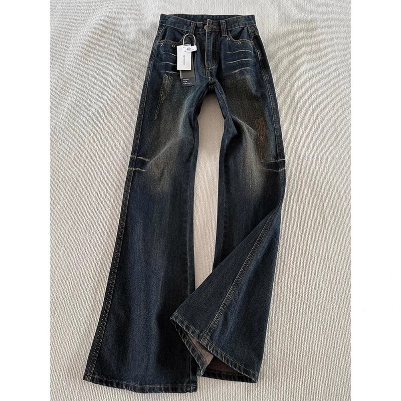 美式复古水洗蓝灰色爪痕工装裤轻奢小众炸街裤子vibe微喇叭直筒裤
