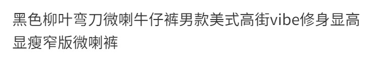 黑色柳叶弯刀微喇牛仔裤男款美式高街vibe修身显高显瘦窄版微喇裤