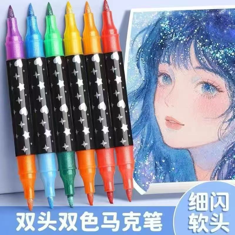 双頭 2 色グリッターマーカーペン新しいグリッターゲルペンアクリル絵画顔料子供用手書き新聞カラー