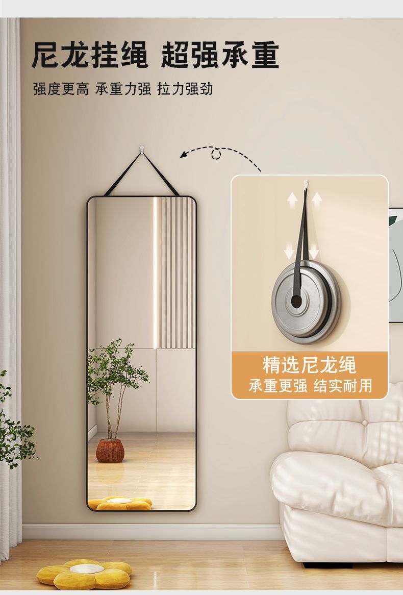 家用全身镜卧室试衣镜无痕挂绳穿衣镜子简约高清女生宿舍挂墙镜子
