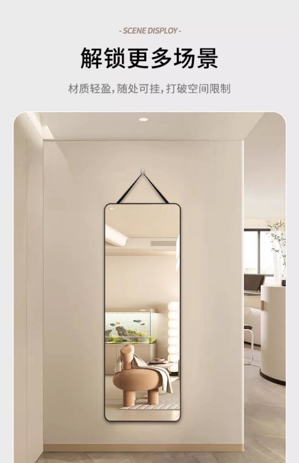 挂壁全身镜镜子挂墙带绳悬挂式镜子挂墙穿衣镜子壁挂式两用免打孔