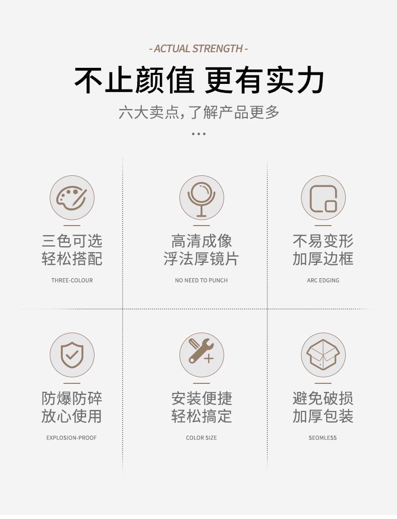 全身鏡、自宅寮フィッティングミラー、ドレッシングウォールフック、シームレスなストラップ、迅速で便利、高精細超透明4Kミラー