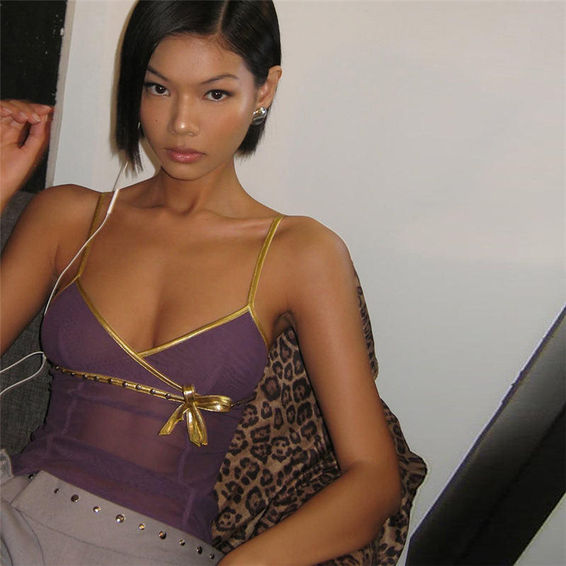 2025欧米風越境春の新型女装純色修身街頭ファッションストラップ首露背ベスト女性