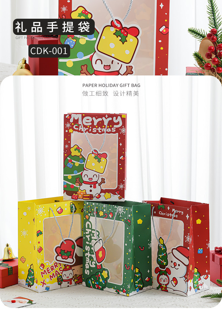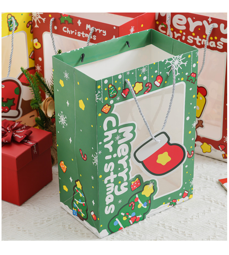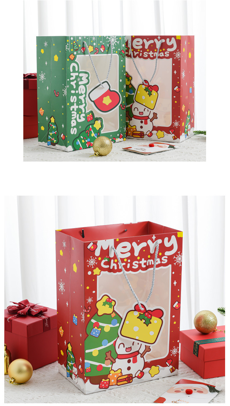 圣诞节伴手礼纸袋开窗印花节日礼品袋平安夜糖果甜品手提袋包装袋