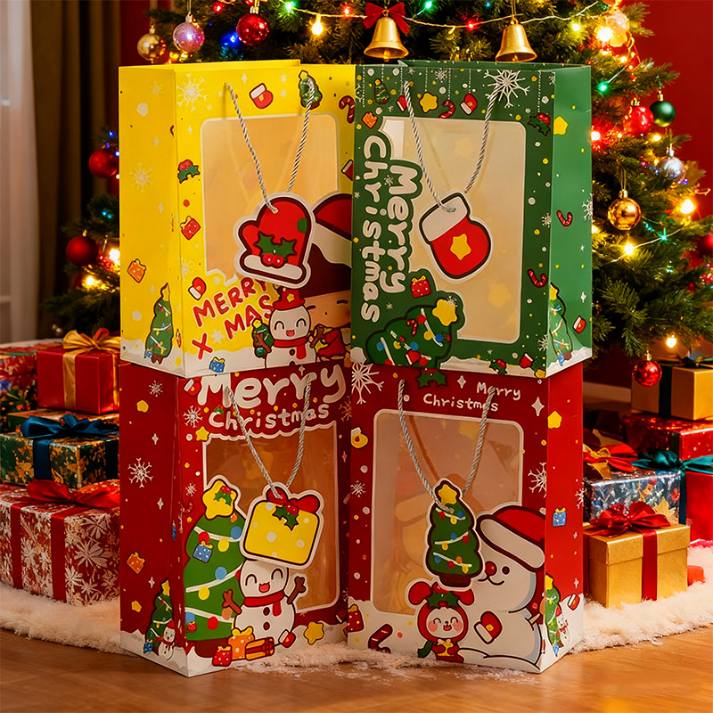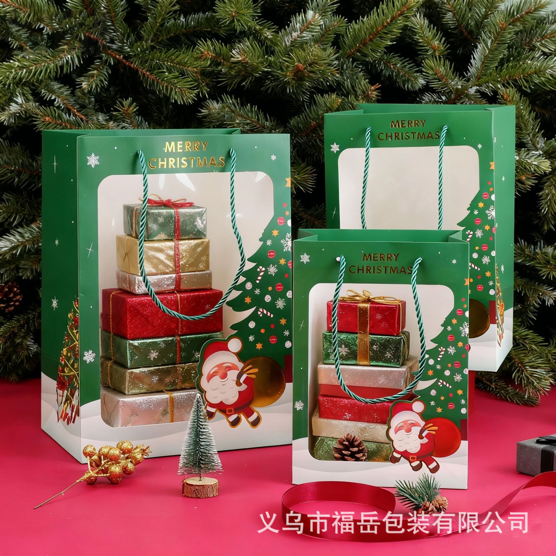 圣诞节伴手礼纸袋子开窗节日礼品2025平安夜糖果甜品手提包装批发