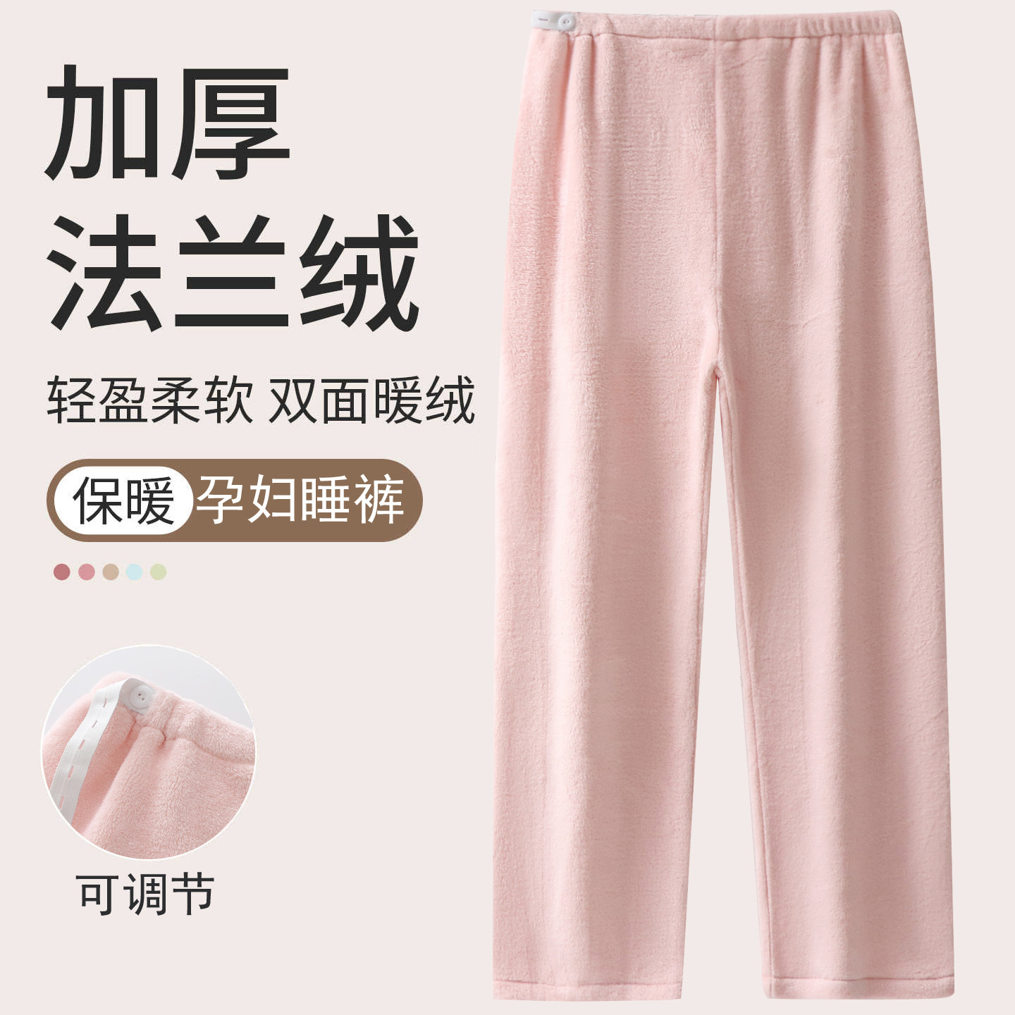 秋冬季可调节不勒肚子法兰绒孕妇睡裤月子裤加绒加厚珊瑚绒家居裤