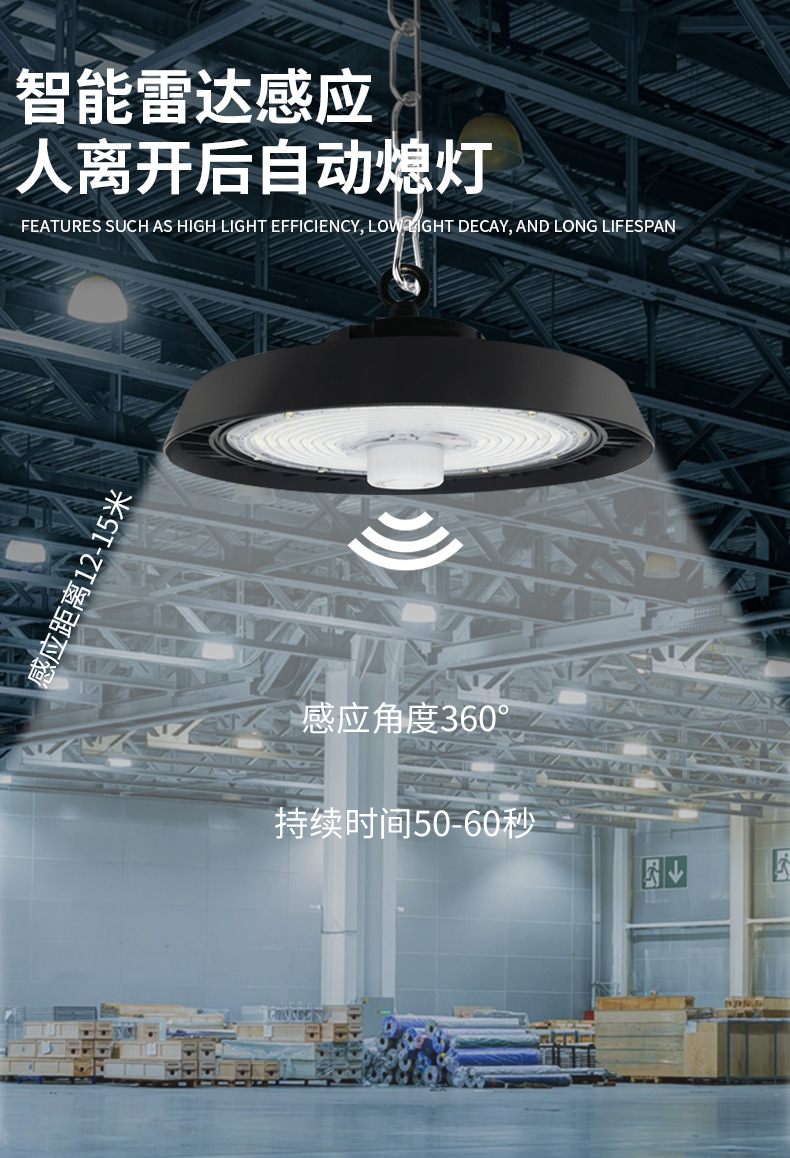 インテリジェント誘導UFO工業用および鉱山用ランプ、超高輝度倉庫吊り下げ高倉庫ランプ、工場ワークショップハイトップ工場LED空飛ぶ円盤ランプ