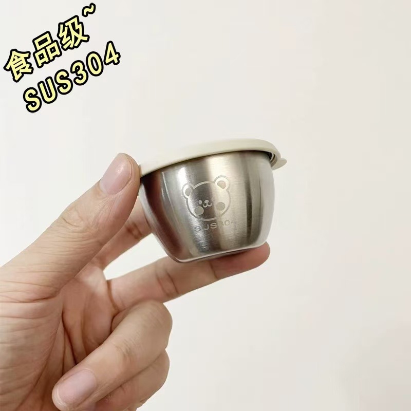 304 ステンレス鋼ミニクマソースカップ蓋付き家庭用サラダドレッシング小箱ポータブル屋外調味料ディップソーサー