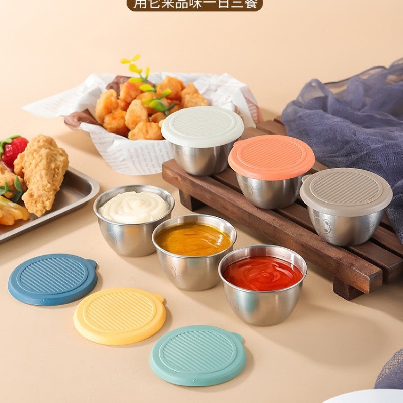 304 ステンレス鋼ミニディップボウル蓋付き屋外トマトサラダボックスソースカップポータブル食器調味料皿