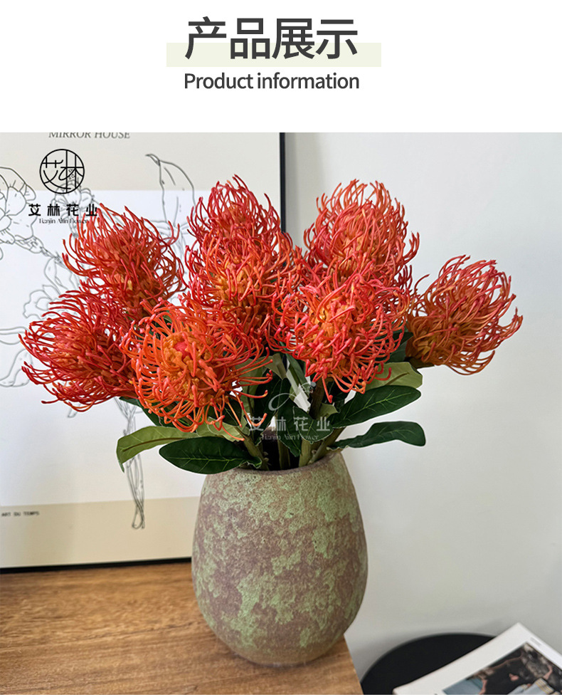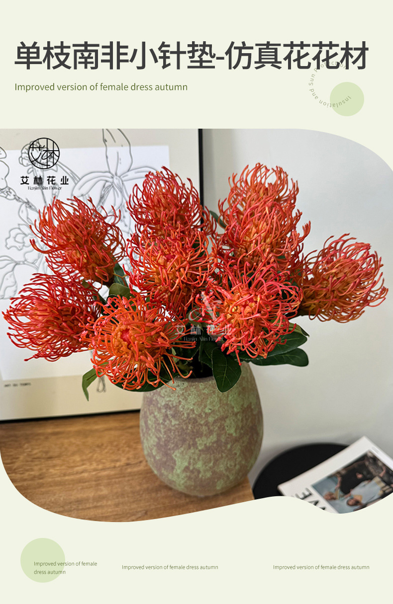 工場直販、高品質模擬南アフリカ産針枕、リビングルームのダイニングテーブル、花のDIYデザイン小道具、手持ち花