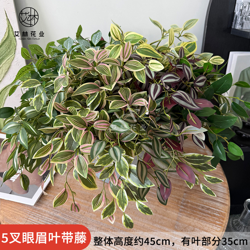 5叉眉毛葉、籐ハンドル束、模擬植物の葉、リビングルームの屋外アーチ装飾、造園鉢植えフラワーアレンジメント