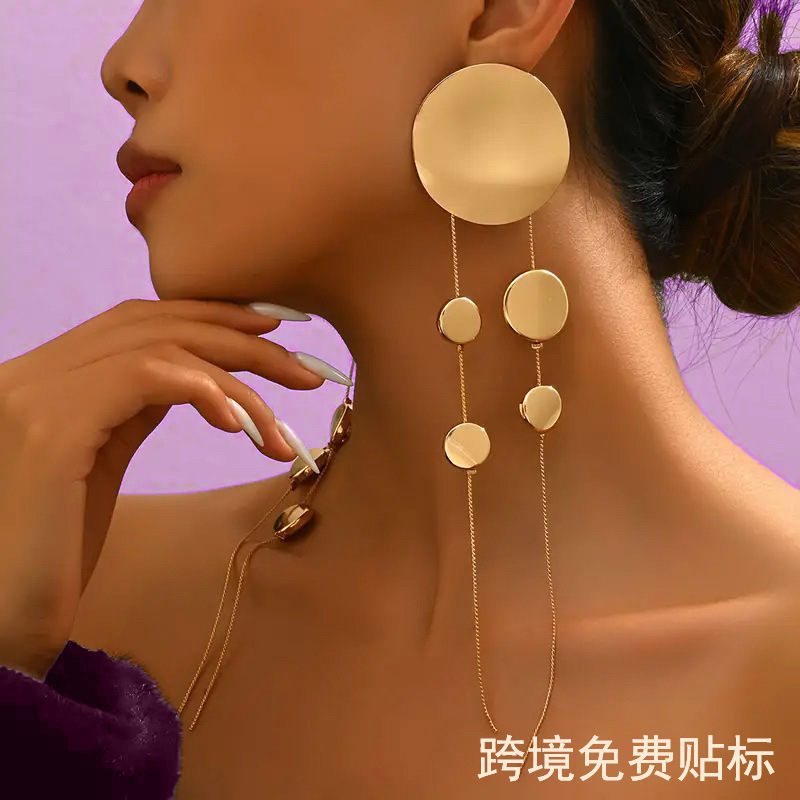 欧米の流行の長いタイプのイヤリングは誇張して個性のイヤリングの円盤のフリンジの大衆の気質の魅力の経典にぶら下がっています。