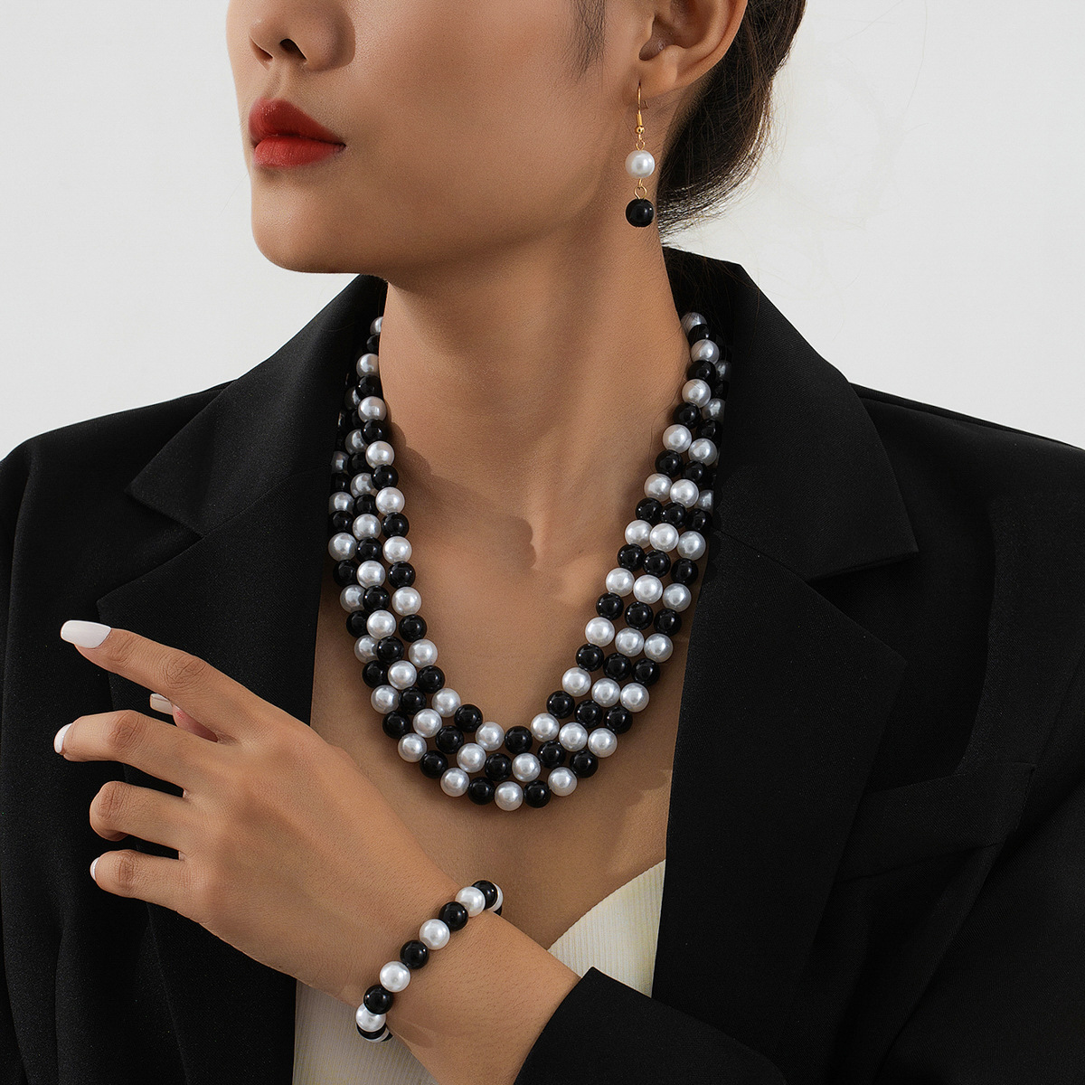 国境を越えた新しい洗練されたデザインのハイライト白黒模造真珠デザインイヤリングブレスレットネックレスセット