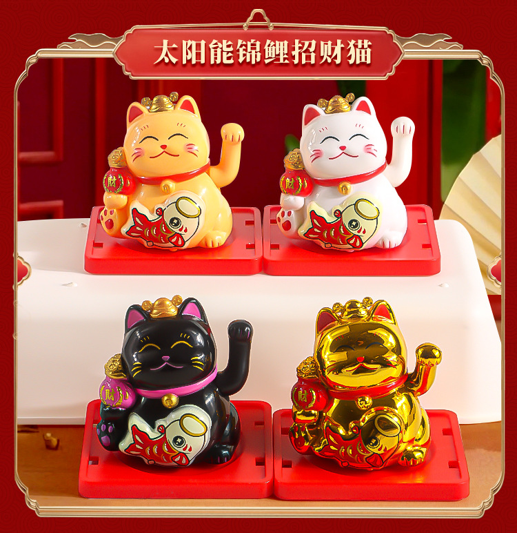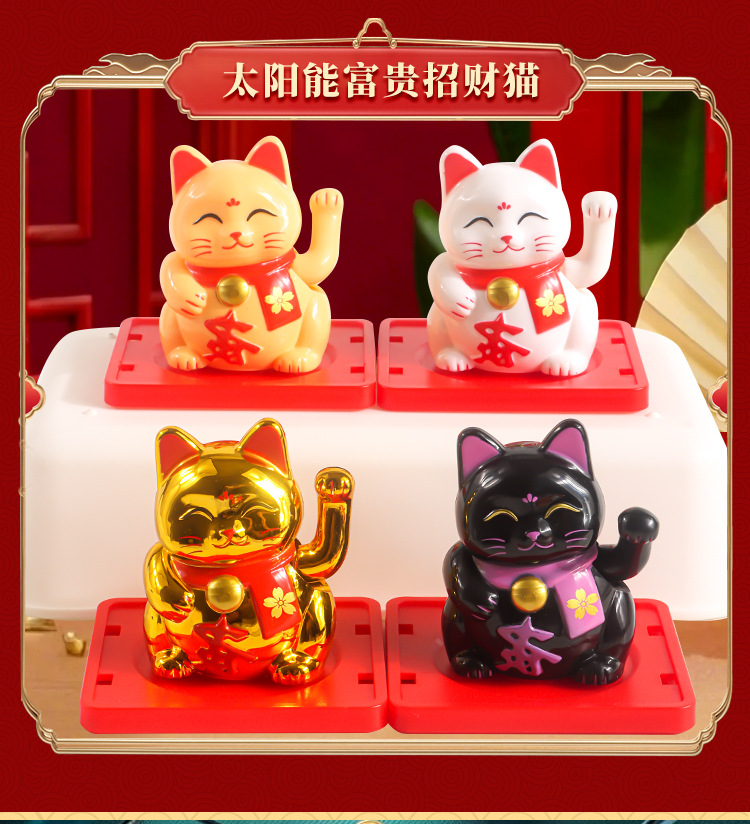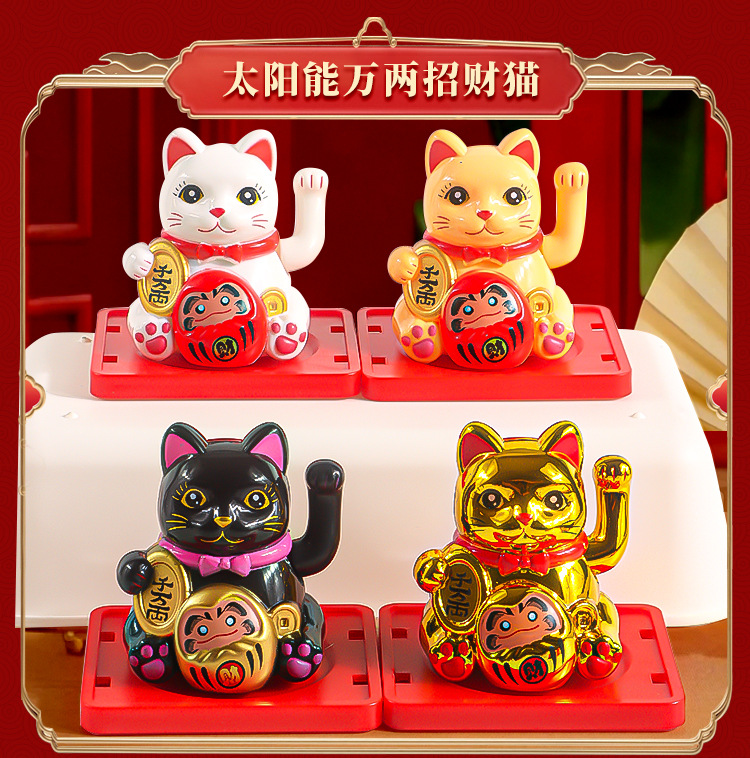 太陽エネルギー招財猫新中国風幸運招手猫開業八方来財車載日系工位小置物