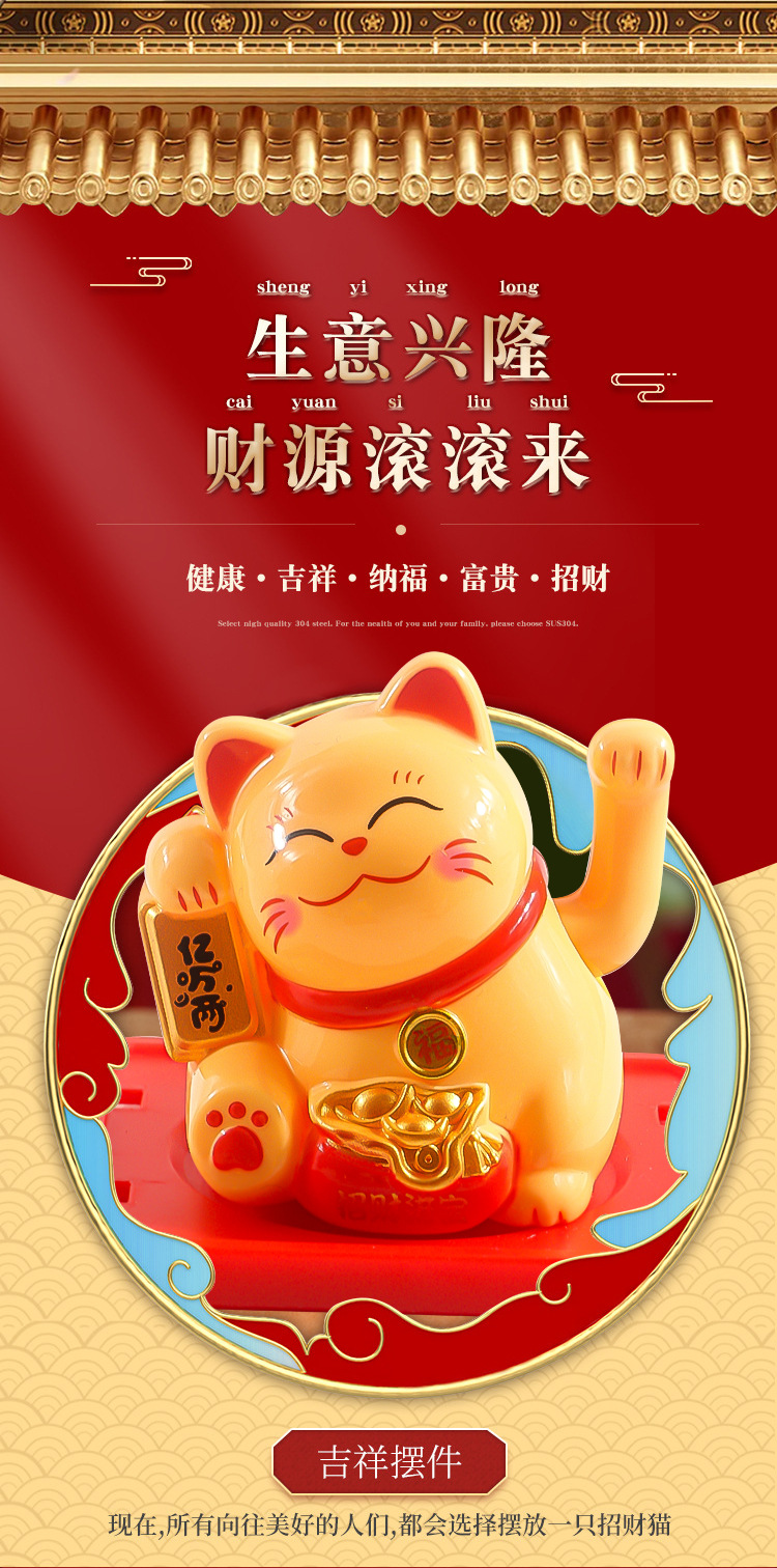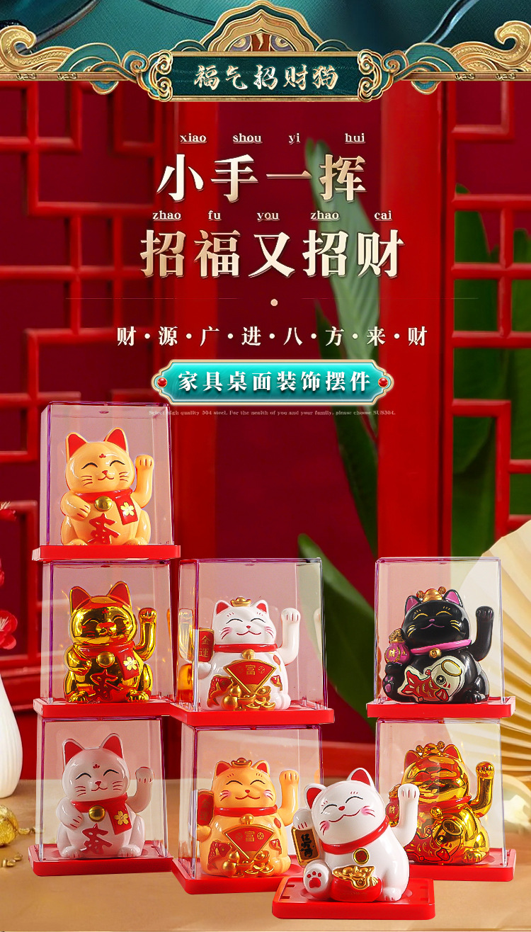 新款中式招财猫自动招手开业车载小摆件落地桌面装饰品厂家批发