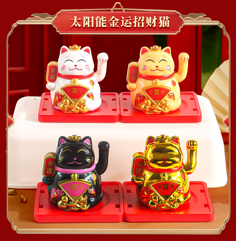 新款太阳能招财猫自动招手发财猫家居桌面装饰收银前台汽车摆件厂