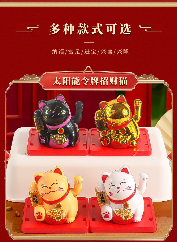 2寸太阳能招财猫自动招手发财猫家居桌面收银前台创意汽车摆件厂