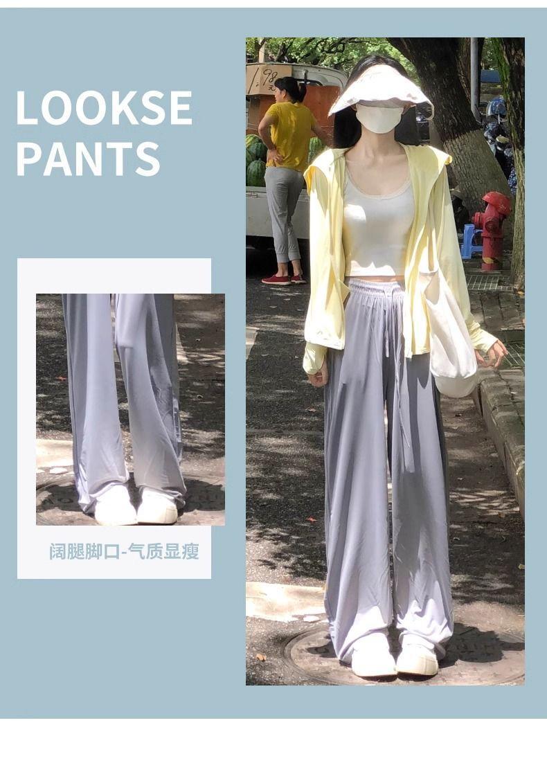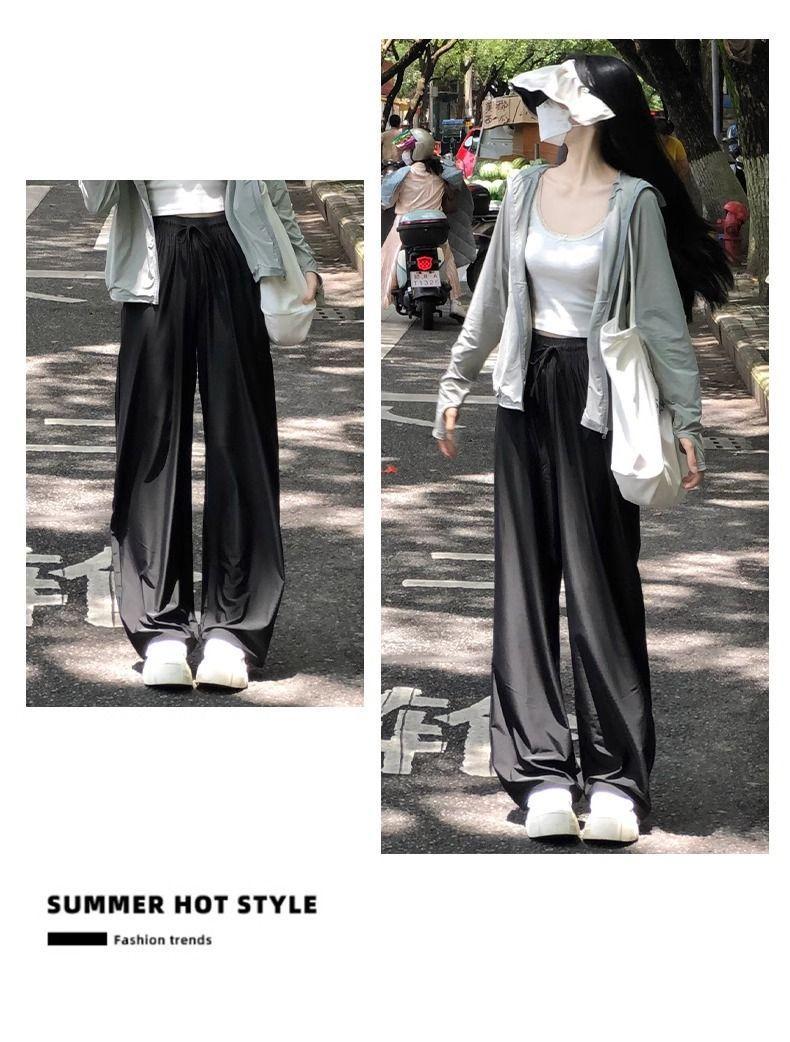 アイスシルクワイドレッグパンツ女性のためのハイウエストドレープ 2025 新しい夏薄い狭いバージョンクールストレート日焼け止めパンツ女性のための